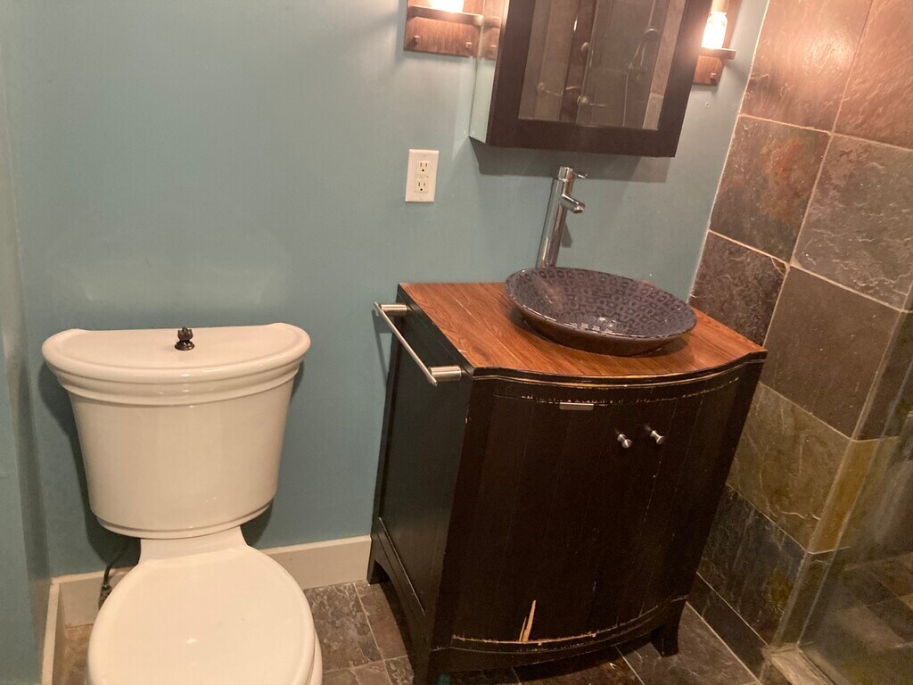 Subzero refrigerator with two freezers , wet bar. Real wood ceiling with artworks. Entrance from street, outdoors porch. Fenced in yard.