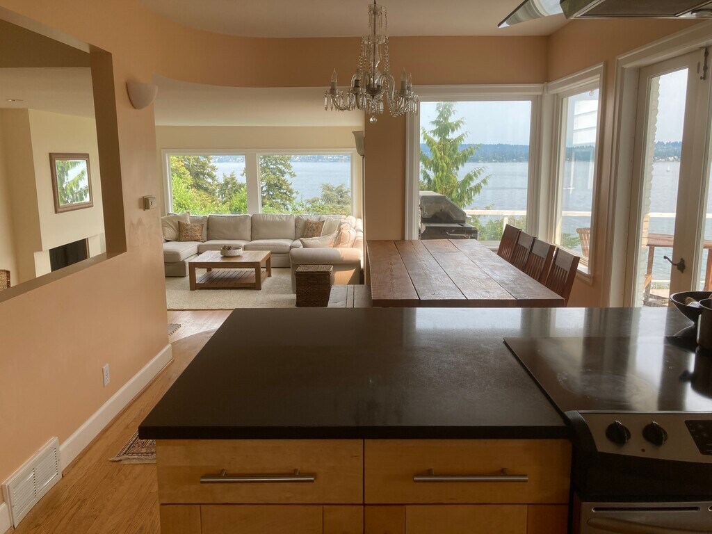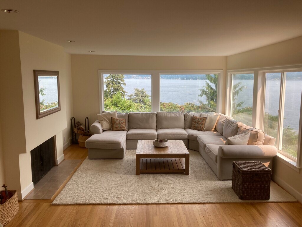 Lovely, light-filled, 3 bedroom, 1.75 bath Mid Century home in Laurelhurst with sweeping views of Lake Washington and Mount Rainier. Tree-lined, quiet, dead-end street with wonderful neighbors. The kitchen is open to the dining and living room, which has a wood-burning fireplace. Freshly refinished hardwood floors and fresh paint throughout add to the sparkle of this jewel box of a home. The dining room opens up to a deck with sweeping views of Lake Washington from Mount Baker to Mount Rainer. The kitchen has granite countertops, SS appliances, and tons of storage. The main level also has 2 bedrooms and a full bath. The lower level has 1 large bedroom, a 3/4 bath, a large rec room with a fireplace and views to Lake Washington, a laundry room, and a very large storage area. Off-street parking with a covered carport. This charming home is just a staircase away from the Laurelhurst beach club, which renters are eligible to join. Walk to Children's Hospital. Quick commute to UW, University Village, downtown Seattle, and Amazon. Easy access to Microsoft Connector, University Light Rail Station. Minimum 12-month lease. Upon signing the lease, the tenant pays the first and last months' rent and a $4,000 damage deposit. $55 per adult tenant application fee for running background checks. No smoking/vaping. One dog under twenty pounds only. $500 pet deposit additional. No cats. Credit requirements are a Credit score of 720 or higher, verified employment, and three times the monthly rent in combined, gross monthly income. Maximum of 4 unrelated adults. Good rental history and no prior evictions accepted. The owner pays for landscaping. Renters pay gas, electricity, and all utilities. The rental application will be given to the potential tenants at the time of showing.