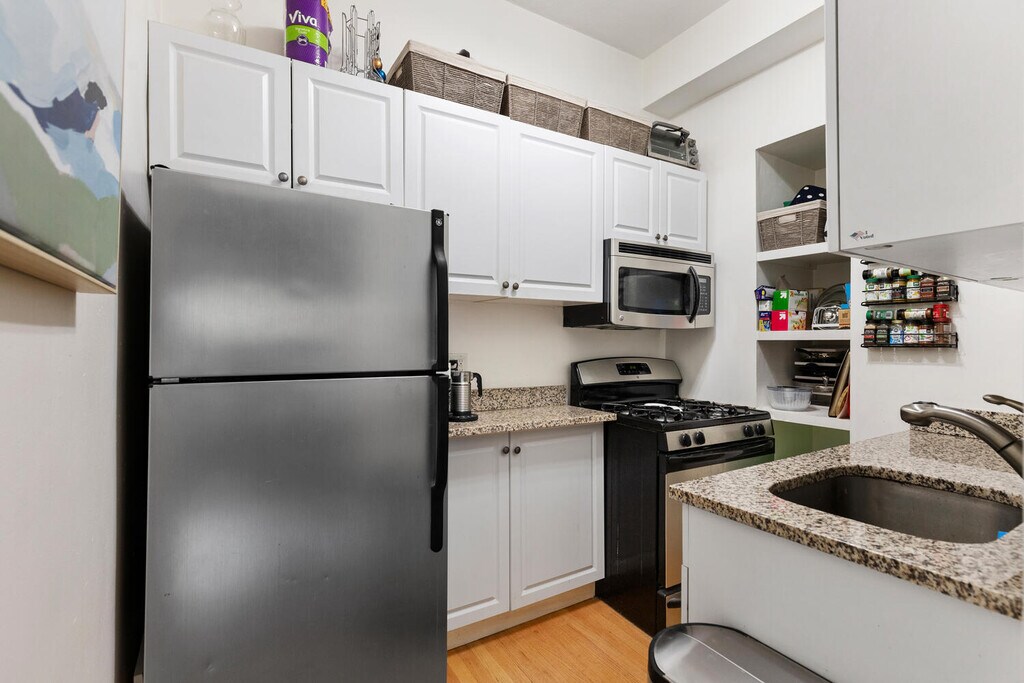 Situated on the quintessential tree-lined Commonwealth Avenue in the heart of the Back Bay, this 1-bedroom is located on the 2nd floor of a professionally managed elevator building. The living room has a large bay window with stunning views of the Commonwealth Avenue Mall, a decorative fireplace, and large floor-to-ceiling built-in shelves. The bedroom can easily fit a king-sized bed and has a spacious closet with an additional storage loft. The updated kitchen features stainless steel appliances and disposal. There are 9.5ft soaring ceilings throughout with ceiling fan in the living room. The building is completed with a common roof deck, laundry room, and bike storage. Rent includes heat, hot water, and trash removal.