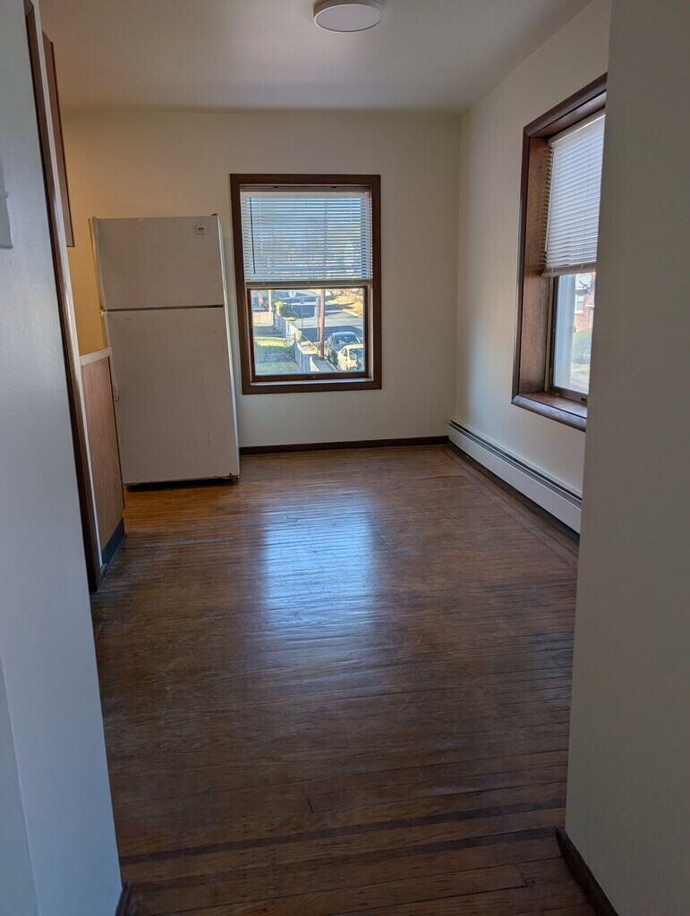 Nice one bedroom, second floor apartment with lots of character. Unique multilevel unit that includes spacious living room with oversized closet, bedroom also has oversized closet, eat-in kitchen with plenty of storage area & bathroom. Freshly painted with new carpets in living room & bedroom. Coin-op laundry in basement is brightly lit & clean. Off-street parking for one car available. Quiet neighbors in building. Close to public transportation & shopping. Gas heating, water & electric not included. NO PETS, NO SMOKING.