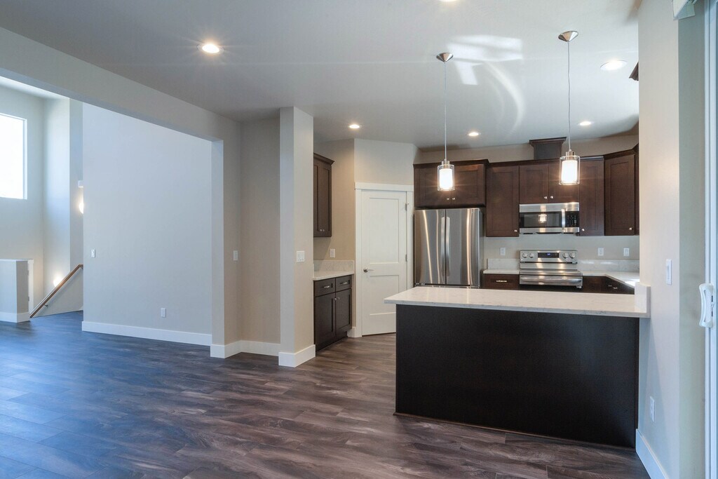 Built in 2022, this home is nestled in the Southwest hills of Eugene. Thoughtfully designed with 4 bedroom, 2.5 baths, and oversized 2 car garage. Features include Master suite with walk-in closet, full bath, granite countertops, black/stainless steel appliances and an electric car charger. Luxury vinyl plank flooring throughout, landscape maintenance included. Enjoy the 1/3 acre private common space. Directions: West on 18th, south on Bailey Hill, left (south) on Warren, continue on Warren with a right turn (if you continue straight, you are on Timberline) Immediately after your right turn on Warren, look to the right for Gansen Way.