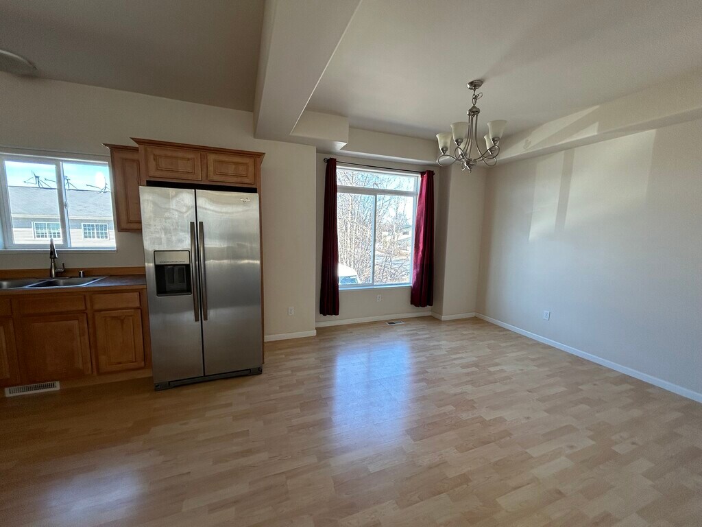 Condo with 3 bedrooms, 2.5 bathrooms, renovated with oversized two-car garage, deck and ready to be moved in. Three additional parking spaces in front of unit. Has open concept living/kitchen/dining along with central heating. Comes with appliances and in-unit washer and dryer. Close to airport, major roadways and public transportation. View of the mountains from bedroom. Close to Sand Lake Elementary and Dimond High, shopping (Fred Meyer, Costco, Dimond Mall), and Kincaid Park. Available from May 1, 2026 onwards.