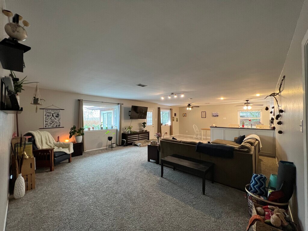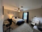 Shaded backyard with patio, large, temperature controlled sunroom with over-sized windows covering 3 walls. Shed/greenhouse in side yard. Newer carpet in bedrooms and living room. Kitchen and bathrooms have been recently renovated with granite countertops. Ceiling fans and walk in closets in all bedrooms. Primary suite has two walk in closets and walk in shower. 12 months lease term, pets considered on case-by-case basis for additional pet fee/deposit, renter in charge of lawn care, deposit is refundable and due at signing, no smoking.