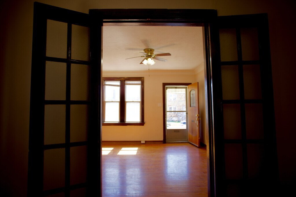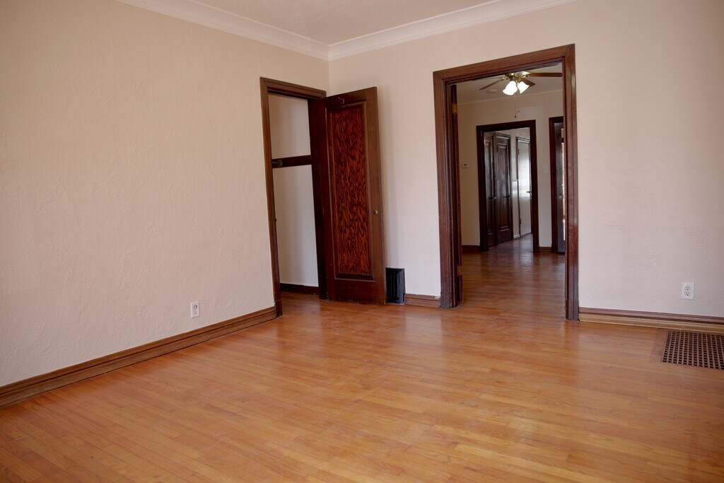 Large 1 bed 1 bath apartment This place has tons of old-world charm with original hardwood flooring and trim throughout the spacious apartment. Enter through the living room and enjoy the original stained-glass windows, go through French doors to the bedroom and a hall beyond to the bathroom, kitchen and bonus sunroom. The eat-in kitchen has plenty of cabinets as well as a walk-in pantry. Includes a new refrigerator and dishwasher as well as a glass top induction stove and oven. The brightly lit bathroom has fresh, new amenities, a shower and tub combo and a linen closet You’ll be very comfortable in this apartment. All rooms have a ceiling fan/light fixture and windows in every room. With central heat and A/C, there are also ceiling fan/light fixtures in every room as well as newer windows with airtight seals (so no drafts). But in nice weather, you can open the windows for a gorgeous cross breeze. With five closets including the pantry and linen closet, you have plenty of storage space but also have a lockable, private storage space in the basement. The basement also has a washer and dryer hook up for you. And there is a shared, fenced back yard. Conveniently located just two blocks off of the main street, you’re ½ block from the park, 1 block from the laundromat and five blocks the grocery store. Making it a very walkable location. Though street parking is available for your car. Utilities include garbage, sewer, and water. All others paid by tenant. Pets up to 40lbs welcome on approval with a refundable $500 additional security deposit, refundable upon move out with no pet damage. A $50 per month pet fee will be added to rent. Rent is $800 per month due on the 1st of each month with an option for a 1yr or 2yr lease. Move in requires 1st month’s rent and security deposit.