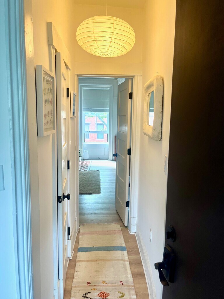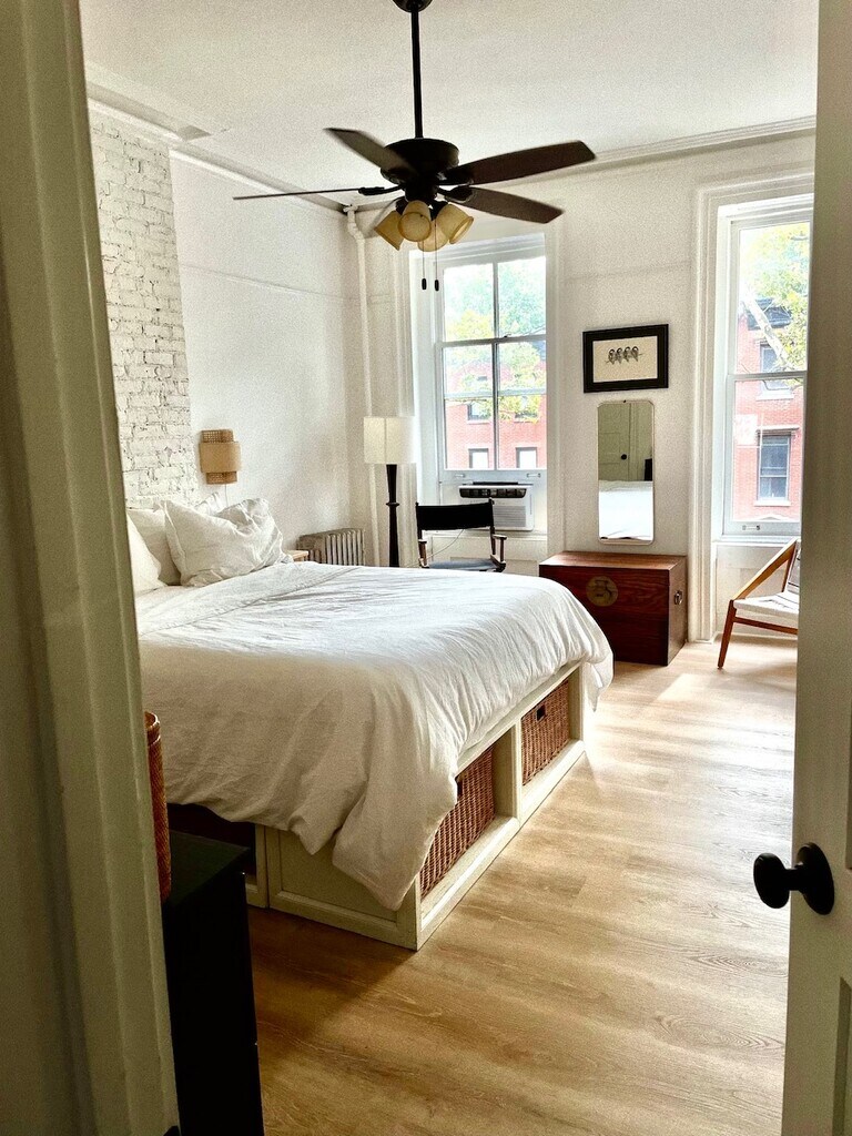 Stylish Open House Sunday 10/26 3-3:30. NO FEE. Stylish, spacious and sunny one bedroom on the 3rd floor in a 4-unit Brownstone on a Historic Landmark street in Fort Greene Brooklyn. Not an apartment but a home. Wood flooring, 10' - 11’ ceilings, large bedroom with 2 large built-in closet, gently updated kitchen and bath. Dishwasherh, disposal, microwave and range. Morning sun in the eat-in kitchen and living room and afternoon sun in the bedroom. Well maintained building with owner on premises. Quiet street and on-street parking without permit. Walking distance (8-10 mins) to BAM, Atlantic Terminal station and shopping mall, Barclays Center, and 5-minute walk to C train @ Lafayette station and G train @ Clinton-Washington stop. Heat and hot water included in rent. Tenant pays, cooking gas, electric , cable etc. One pet allowed by permission, one year lease, no guarantors, employment and current residence references essential, good credit and steady full-time employment. NO FEE