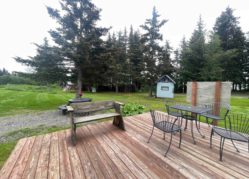 This fully-furnished apartment is a perfect place to call home! The styled one-bedroom unit features a queen bed along with a cozy living room, full bathroom, and full kitchen. The unit is located in the middle of town--Within walking distance you'll find The Homer Bookstore, Captain's Coffee, and other stores. Please note that this apartment is located on the top floor, so there are stairs to access the unit. In addition to your unit, free parking is available on either side of the building. The backyard is shared among other residents and contains a fire pit and outdoor dining areas.