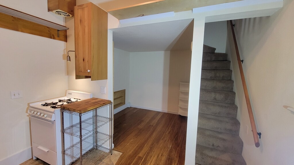 Studio in the Woods Private cozy 1 person studio Apartment in 4 Unit Building Secluded property located at end of driveway, surrounded by woods Walking distance to Cal Poly Humboldt Tall ceilings Sleeping loft On demand hot water One parking spot No dogs. Cats ok. All utilities included: Gas/electricity, water/sewer, garbage Dedicated laundry room for this unit with free washer/dryer 1 year lease $1100/month rent $1100 security deposit Available immediately
