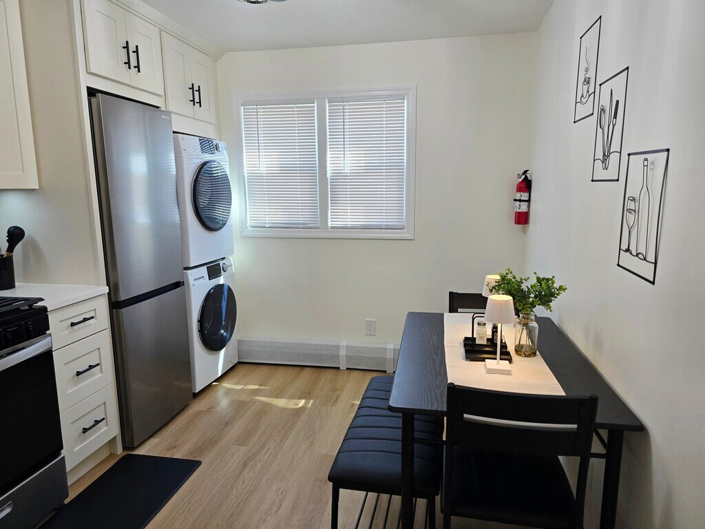 This FULLY FURNISHED, comfortable, 2 bedroom apartment is on the first floor of a two family home. The property is conveniently located within walking distance of Hackensack University Medical Center, making it an ideal residence for medical professionals, students, or anyone looking for easy access to the area. Hackensack's bustling Main street is 3 miles away and features local businesses, diverse dining experiences and a performing arts center. The apartment has been completely renovated and boasts amenities such as in-unit washer and dryer, 3 smart TV's, and free Wi-fi. There is a guaranteed parking spot for one vehicle in the driveway, which provides comfort and security each time residents return home. Additional street parking is available if needed. A bus stop is located right next to the house, making local transportation and the commute to NYC quick and highly accessible. With its welcoming atmosphere and excellent location, this apartment is a great place to call home.