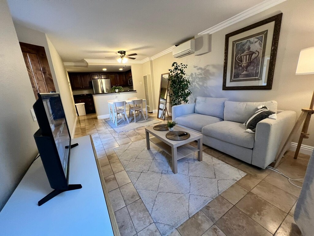 Whole 2 bedroom condo OR by INDIVIDUAL ROOM OPTION with housemate matching available. *NO UPFRONT APPLICATION FEES* Flexible length FURNISHED, Month-to-month, 5+ months. TOP CORNER UNIT 2 bedrooms AVAILABILITY NOW 2 bedrooms / 2 or 2.5 baths separate floors, 1,100, top floor FURNISH Starting at $3,595/mo for 5+ month, Inquire for month-to-month and daily rates Private bedroom and private bathroom one other housemate FURNISHED $1,795/mo for 5+ month UNFURNISHED available by request, same price * Students, international students, and others are welcome with not yet established credit, no co-signer needed. * These units are located at the Venetian La Jolla 1 bd, 2 bd, and 2 bd + room divider condos for lease. Personal washer/dryer condominium. Pet friendly. * Safe, quiet, and clean upgraded top floor corner unit condos Leasing in La Jolla, UTC downtown, UCSD. * Interior facing with upgraded premium wood flooring, mood ceiling light dimmer fan options, and new dual pane windows for extra insulation. * Comes with personal indoor washer/dryer, granite countertops throughout, stainless steel refrigerator and appliances: refrigerator, freezer, dishwasher, microwave, stove and oven in each unit. Marble style travertine kitchen and bath floors and premium wood flooring throughout; Spacious vaulted bedroom ceilings. * Next to Bus Lines (30 202 201 UCSD 1st Arriba Stop); Spectrum internet fastest internet in UTC; Eight Electric Vehicle chargers on-site exclusive for residents. * Environmentally friendly with state-of-art LED, motion sensor energy saving, solar community zero offset carbon footprint, and reclaim water with drip conservation. * Very quiet and open patio to relax. Swimming pool and jacuzzi salt treated for better environment impact; two commercial grade BBQ's; two tennis courts; club house fitness center with full gym and two big study lounges; Assigned parking spaces and plenty on-street parking; Gated, video surveillance, and security patrols for extra safety. * Centrally located with easy access to the major freeways (5, 52 and 805) and walking distance to UCSD, UTC Westfield mall; Whole Foods; Trader Joe's; Von's; movie theaters and many restaurants; Next to the largest park in UTC, Doyle Park, with two dog parks, basketball courts, volleyball, and playgrounds; next to La Jolla Colony Park open green area Scripps Hospital; * 2 miles or 10 minutes to La Jolla shores beach and cove, Black's Beach, Pacific Beach, Gliderport, Mount Soledad, Torrey Pines golf course and nature preserve. * Short 15 minutes to Balboa Park and Downtown Embarcadero and Seaport Village. * No smoking; Pets negotiable * Prices and availability may change without notice. Schedule tour please e-mail directly with ALL housemates for more information.