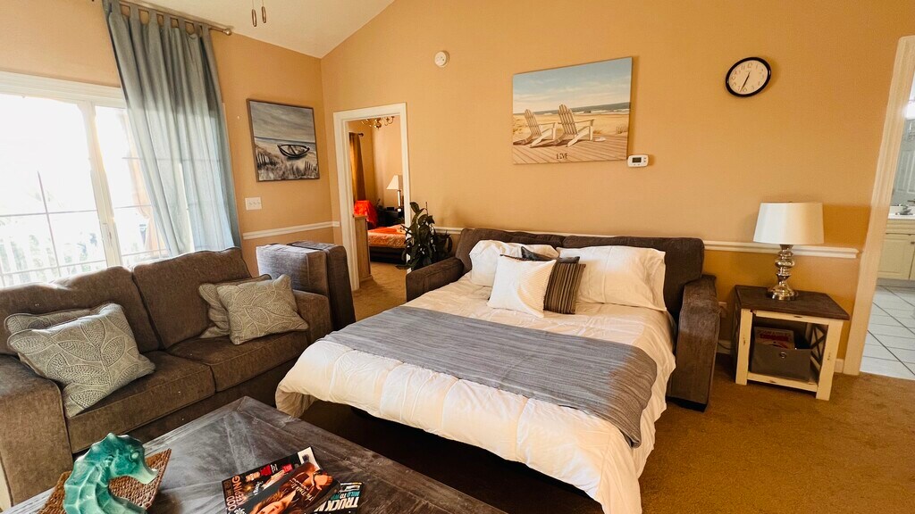 Fully furnished condo with balcony view of the lake. Located in Azalea Lakes, close to Myrtle Beach, and Surfside Beach. Indoor/Outdoor pool, on-site gym, and grills in common areas. Indoor pool is great on rainy days, or when weather is too hot! Very close proximity to hospital and Market Commons. This unit has a PlayStation with a guest pass, a queen sleeper sofa, and a washer/dryer in unit. 2 Designated desk areas. GREAT for work at home, or traveling workers! Traveling nurses New to area Corporate housing Work from home (with a view)