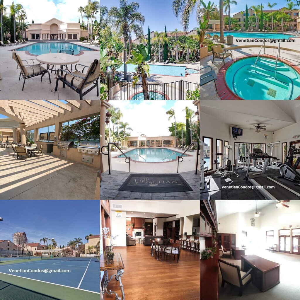 Whole 2 bedroom condo OR by ROOM OPTION with housemate matching available. *NO UPFRONT APPLICATION FEES* FURNISHED, Month-to-month, and/or 8-12+ months TOP CORNER UNIT 2 bedrooms AVAILABILITY NOW 2 bedrooms / 2 or 2.5 baths separate floors, 1,100, top floor * Students, international students, and others are welcome with not yet established credit, no co-signer needed. * These units are located at the Venetian La Jolla 1 bd, 2 bd, and 2 bd + room divider condos for lease. Personal washer/dryer condominium. Pet friendly. * Safe, quiet, and clean upgraded top floor corner unit condos Leasing in La Jolla, UTC downtown, UCSD. * Interior facing with upgraded premium wood flooring, mood ceiling light dimmer fan options, and new dual pane windows for extra insulation. * Comes with personal indoor washer/dryer, granite countertops throughout, stainless steel refrigerator and appliances: refrigerator, freezer, dishwasher, microwave, stove and oven in each unit. Marble style travertine kitchen and bath floors and premium wood flooring throughout; Spacious vaulted bedroom ceilings. * Next to Bus Lines (30 202 201 UCSD 1st Arriba Stop); Spectrum internet fastest internet in UTC; Eight Electric Vehicle chargers on-site exclusive for residents. * Environmentally friendly with state-of-art LED, motion sensor energy saving, solar community zero offset carbon footprint, and reclaim water with drip conservation. * Very quiet and open patio to relax. Swimming pool and jacuzzi salt treated for better environment impact; two commercial grade BBQ's; two tennis courts; club house fitness center with full gym and two big study lounges; Assigned parking spaces and plenty on-street parking; Gated, video surveillance, and security patrols for extra safety. * Centrally located with easy access to the major freeways (5, 52 and 805) and walking distance to UCSD, UTC Westfield mall; Whole Foods; Trader Joe's; Von's; movie theaters and many restaurants; Next to the largest park in UTC, Doyle Park, with two dog parks, basketball courts, volleyball, and playgrounds; next to La Jolla Colony Park open green area Scripps Hospital; * 2 miles or 10 minutes to La Jolla shores beach and cove, Black's Beach, Pacific Beach, Gliderport, Mount Soledad, Torrey Pines golf course and nature preserve. * Short 15 minutes to Balboa Park and Downtown Embarcadero and Seaport Village. * No smoking; Pets negotiable * Prices and availability may change without notice. Schedule tour please e-mail directly with ALL housemates VenetianCondos@gmail com for more information.