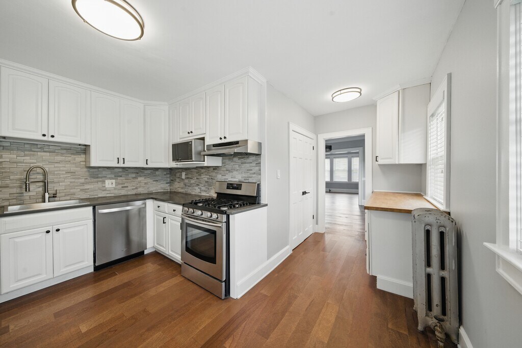 A beautifully renovated 3-bedroom, 2-bathroom upper-level duplex offers space, style, and comfort in a quiet, safe neighborhood just minutes from the city. Thoughtfully updated throughout, this expansive two-story unit blends modern finishes with warm, functional living. Includes modern kitchen with stainless steel appliances, including dishwasher, gas range, and stylish finishes. Two full bathrooms and gleaming hardwood throughout the house. New top floor master suite. Washer/Dryer and air conditioners included. Your own 1-car garage space, plus 2 additional off street spaces On street parking non-permit without street cleaning from March->December. Unlike surrounding towns, your friends can stay the night! Walk to the Arsenal Project down beautiful town bicycle and walking trails, a park one block away, amazing restaurants. Close to the Cambridge line, with bus stops and bike paths leading to Harvard Square and downtown Boston. Residential street, perfect for peaceful living with easy city access Just a few minutes drive to the Mass Pike if you like to get in or out of the city quickly by car! NO BROKER FEE! Owner managed, who is local and lived in the house for years and continues to build out and maintain the space. Get support and someone who cares, unlike those local commercial luxury buildings! We are looking for people who will care for the property the way we did and do!