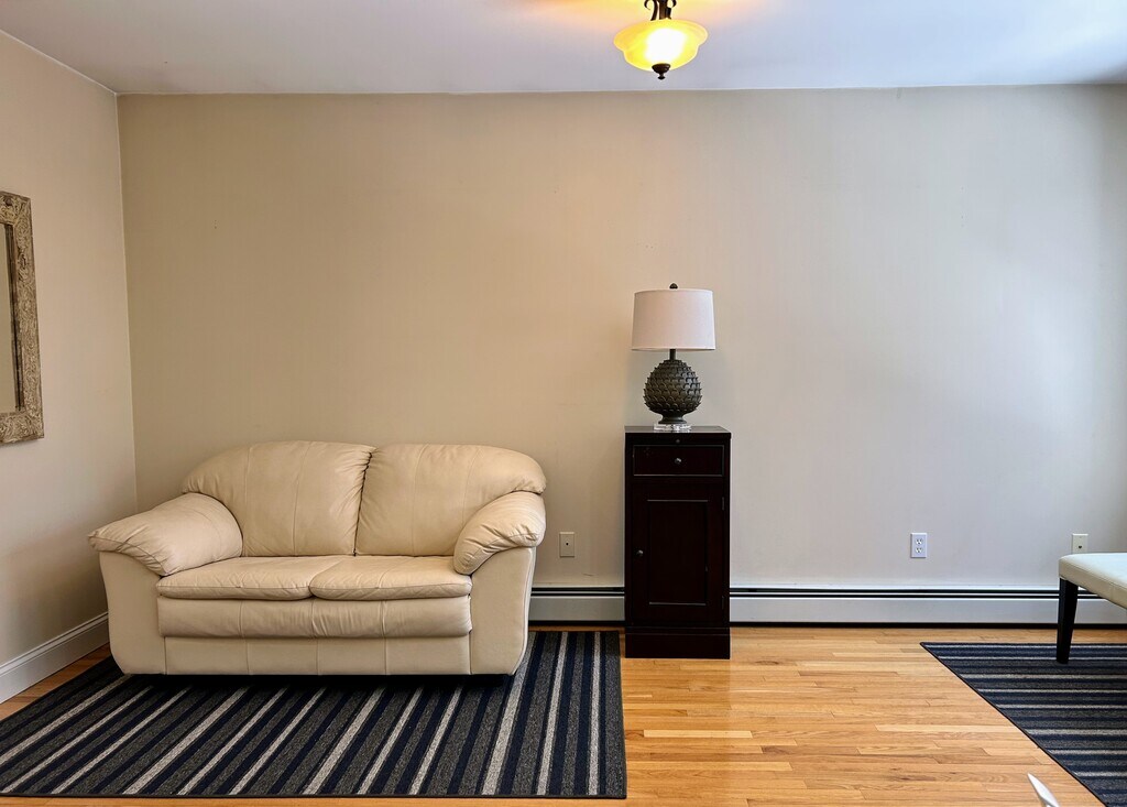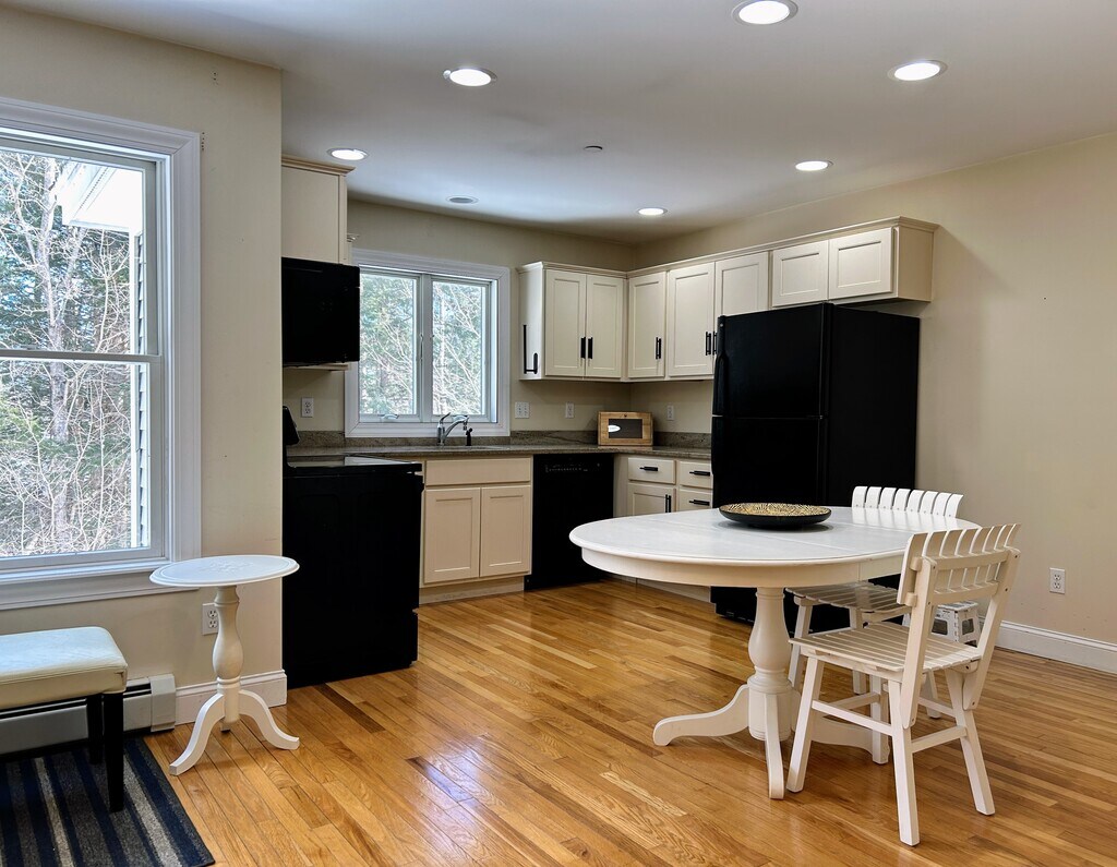 Open concept living with hardwood floors & serene views. +-958 square feet. Kitchen with granite counters, painted cabinets, & electric appliances 2 carpeted bedrooms. Bathroom with shower, laundry in unit. Your own garage space, large yard, and deck. Unfinished basement space (with large windows) for ping pong or extra storage. Close to hiking trails, 12 minutes to grocery and I95, 14 minutes to schools and Town Hall. Furnishings available. Lease term minimum 6 months. Pets allowed (with interview). Absolutely no smoking. Unit is attached to a single family home. $2,500 includes heat/hot water/electricity/trash removal/plowing Security deposit, background & credit check, & references required. Minimum credit score of 660.