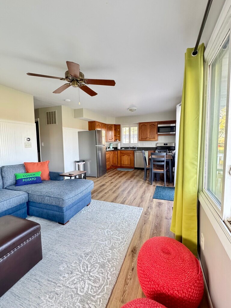 FURNISHED LAKEFRONT PROPERTY in Warsaw, Indiana available for monthly rental (any month from Nov 26 through April 25). This home is located just 8 minutes from Zimmer Biomet and 11 minutes from Parkview Kosciusko Hospital. This 2 bed, 1 bath home is on Big Chapman Lake (great for fishing and recreational lake sports). The first bedroom is furnished with a king size bed. The second bedroom is furnished with a queen bed and twin bunks. All kitchen appliances (fridge/freezer, stove/oven, microwave, dishwasher) are brand new and it is equpped with kitchen accessories/essentials. Propane grill available. Washer and dryer are in-unit! All utilities + wifi included.