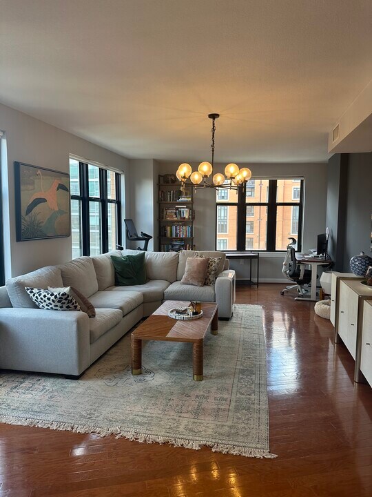 GIANT SUNNY 1 bed/1.5 bath condo in convenient Mt Vernon Triangle. All day sunlight (& sunset views) in this end corner unit that is very quiet and great for folks that work from home. GARAGE PARKING INCLUDED!! Double vanities, 2 showers, wine fridge, newly installed custom walk-in closet and massive pantry are just some of the features that make this unit a dream. Take advantage of the rooftop Capitol views, pool, gym, and safety of 24/7 security concierge. Only a few blocks to multiple metro stops, Capital One Arena, and tons of dining/bars right in the neighborhood. Pet friendly! (($3600/month for 2 year lease commitment))