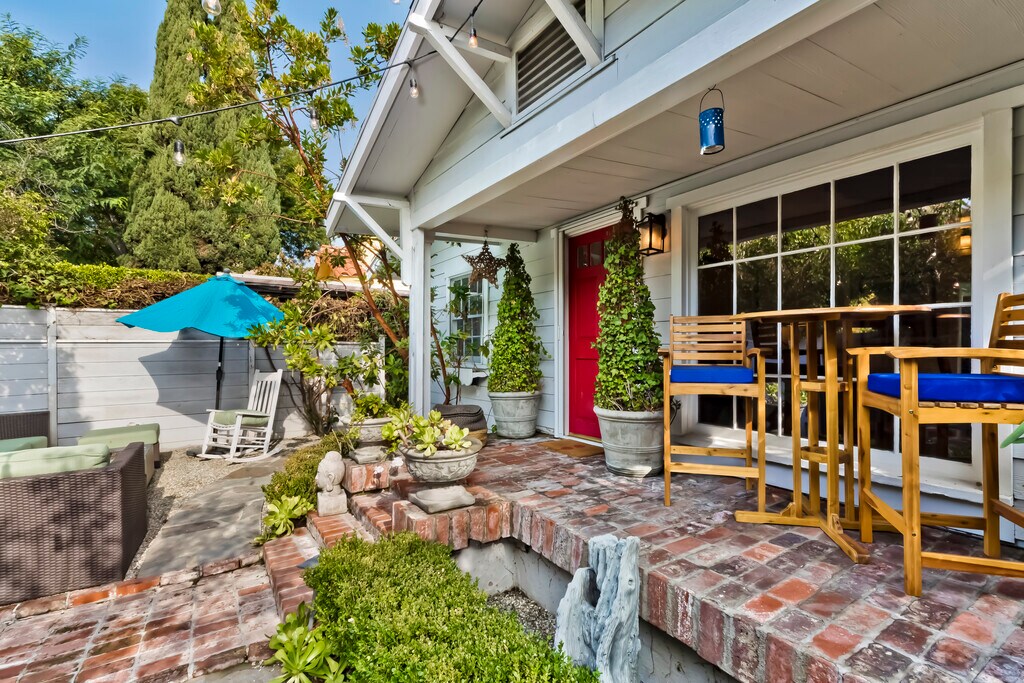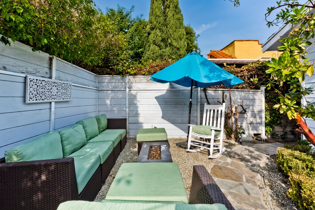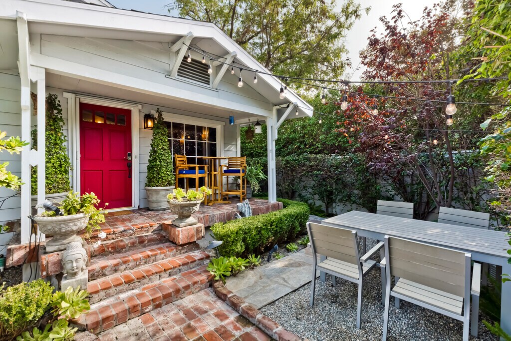 SHORT OR LONG TERM fully furnished rental in West Hollywood, this English cottage provides a convenient location just steps away from the Beverly Center, Pacific Design Center, and Cedar Sinai. The private home boasts a spacious garden complete with abundant outdoor seating, a dining area, a fire pit, and a BBQ. Inside the house, you're greeted by a delightful living space with wood beams, a comfortable sofa, and a cozy fireplace. Cottage windows offer views of the garden, creating a charming atmosphere. The dining area accommodates four people and includes a cocktail bar for your leisure. The master bedroom features a king-sized bed, a flat-screen TV, and ample closet space. A generously sized bathroom offers two separate vanities, a bathtub, and a shower. An additional bedroom with a double bed provides plenty of closet space and its own flat-screen TV. The country-style kitchen is fully equipped with a dishwasher, refrigerator, stove, and all necessary cookware, dishes, and amenities. Stackable laundry is located in the kitchen Adjacent to the kitchen, you'll find a cozy alcove serving as a home office with a desk. Parking options include both driveway and street parking. The property is exceptionally private, enclosed by gates. The location is conveniently situated just a short stroll from exceptional restaurants, shopping, and vibrant nightlife. Worth noting, the property encompasses two houses on a single lot. These properties are distinct from each other and are accessible from two different streets. Please note prices may change without notice. Summer rates apply.