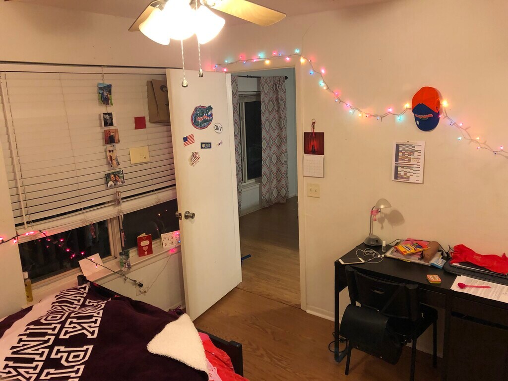 Rooms available in fully furnished, all inclusive apartments for 1 year lease starting August 1, 2026. Apartments are located on 2nd and 3rd floor and have a gated entryway for added safety * Each bedroom has its own private bathroom, spacious walk in closet, and locked entrance * Bedrooms comes fully furnished with modern bed frame, pillow top mattress, desk, dresser, side table, lamp, and new ceiling fan * Rent Includes electricity, water, and high speed fiber optic internet (GatorNet 1Gb/s) * Fully equipped kitchen with microwave, dishwasher, spacious fridge, and smooth top range * Shared living area with wooden floors, couches, flat screen tv, dining area, washer & dryer * Apartment complex has gym, volleyball and basketball courts, jacuzzi, and pool * On 9 and 35 bus routes and free parking * Rent is $495 per month for full year lease