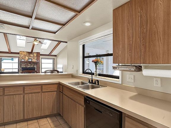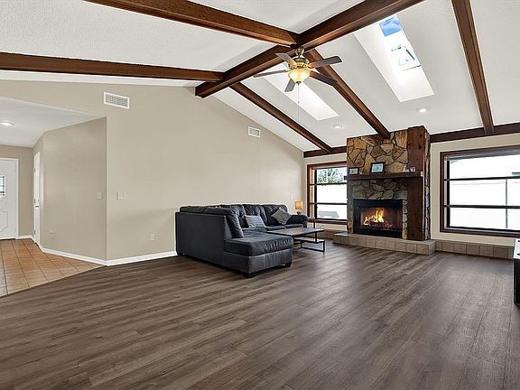 Welcome to this charming three-bedroom, two-bathroom home nestled in the heart of Seffner. This unique residence offers a private pool, a two-car garage, and a host of delightful features that make it an ideal place to call home. As you step through the front door, you'll be captivated by the high ceilings in the living room, accented by wooden beams and bathed in natural light thanks to vaulted ceilings with skylights. The centerpiece of the living room is a wood-burning fireplace with a stone over-mantel, perfect for cozy evenings with family and friends. The kitchen is open to the living room and has a convenient breakfast bar for casual dining. There are lots of cabinets for all your organizational and storage needs! The spacious primary bedroom features a set of French doors that open to a screened-in pool deck, where you can wake up to the serene beauty of your backyard. The primary bedroom also boasts a private attached bathroom with dual sinks, a wood-panel ceiling, and a large soaking tub for relaxation. The additional bedrooms are also a good size and come equipped with ceiling fans to keep you comfortable year-round. The second bathroom also offers dual sinks and a convenient entrance to the pool area, making it perfect for post-swim refreshment. The laundry room is conveniently located near the 2nd and 3rd bedrooms! Entertaining is a breeze with the dry bar located just off the kitchen, providing easy access to the deck and pool area. Step outside through the French doors onto the screened-in pool deck, where you can fire up the grill and relish in the Florida weather. Whether you're hosting a barbecue or enjoying a quiet evening, this space is perfect for both. The property has a fence that separates the front and back yard that was added in 2024. The AC was replaced in 2024 and the roof was done in 2022. Newer appliances throughout the kitchen. This home is ideally located close to various shopping centers and restaurants, ensuring you have all the conveniences of city life within reach while still being able to enjoy the tranquility of your private paradise. Don't miss the opportunity to make this Seffner gem your own. Schedule a viewing today and discover the perfect blend of comfort, style, and Florida living.