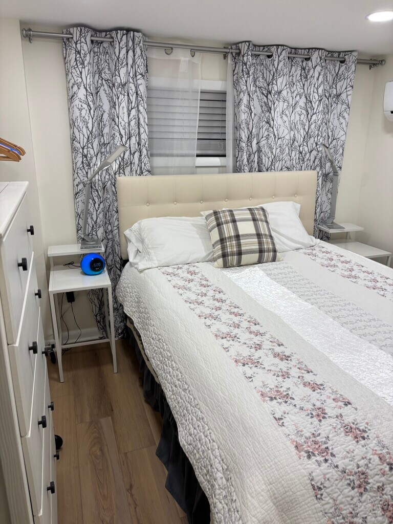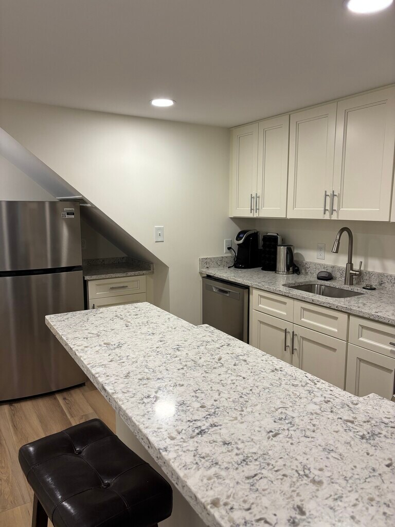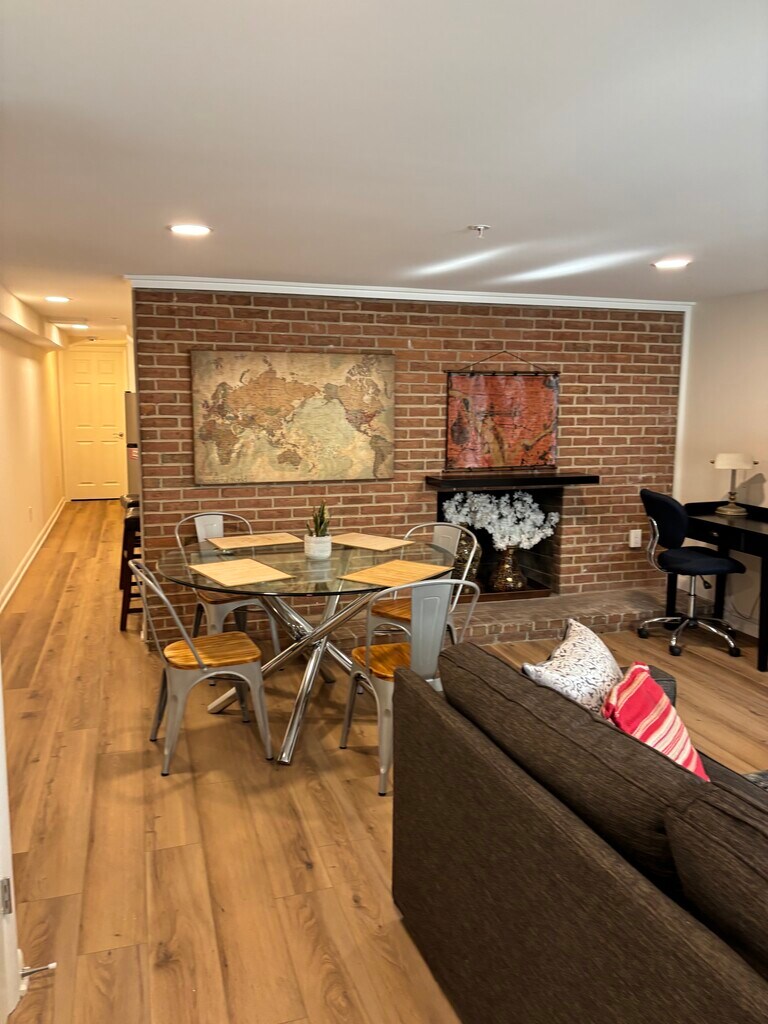 This 646 sq ft, 1BR/1BA furnished walkout basement apartment in historic Capitol Hill (near Stanton Park) includes a queen bed, queen sofa bed, Smart TV with air antenna accessing free local channels and Wi-Fi connected), full kitchen with dishwasher, in-unit W/D, and mini-split AC. Utilities (electric, water, trash, Wi-Fi) are included in rent, offering a well-maintained, comfortable living space. 3-12 month leases available