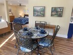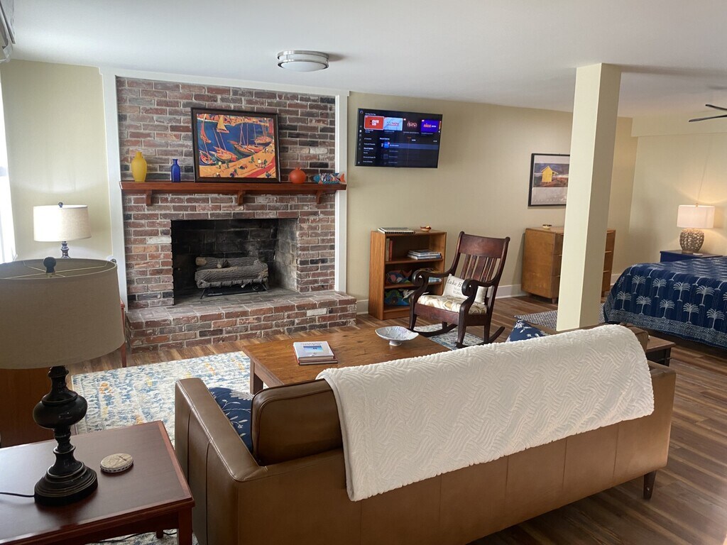 Serene, safe, and quiet setting convenient to everything. This is a open floor plan, furnished studio apartment with large bedroom nook, large living area, dining area and well-appointed kitchenette. The oven is a countertop unit and there is an induction hot plate. The kitchen is stocked with most any accessory you might need. The refrigerator 3/4 sized and has a freezer space as well. The bathroom is spacious and stocked with bath linens. Bed linens are included. The bed is queen size and adjustable. There is a dedicated washer and dryer adjacent to the unit. There are two private entrances and a lovely patio area outside of the French doors. The patio area is well lit if desired and overlooks a gorgeous garden and lake cove. All utilities plus high-speed internet are included. The space is heated and cooled with a super quiet mini-split unit. Window coverings go to the floor. The hot water is instant. The unit is new in that it was completely remodeled in 2024. This apartment is the bottom floor of a private residence. The location cannot be beat. The unit is close to dining, shopping and major highways, yet very quiet and private.
