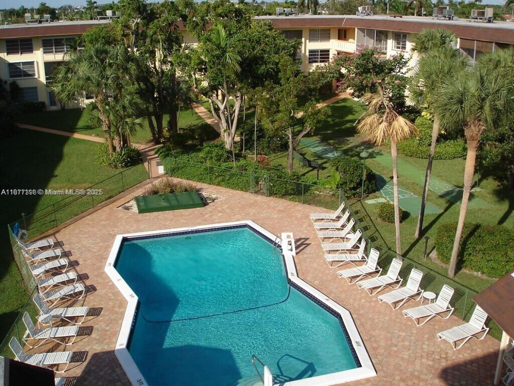Walk to Fresh Market, LA Fitness, numerous restaurants, Holy Cross Hospital, and Publix. Short bike ride to Fort Lauderdale Beach. Recently renovated. Well-manicured grounds. The property has been renovated inside and out. Freshly painted as of 1 month ago. Pool, shuffleboard, clubroom, and large common bike storage room. Shaded balcony with a screen to keep mosquitoes out. Quiet community. Low Density. Exterior walk-up. The breezy corner unit has easy access to the garbage chute, laundry facility, and storage unit, which is included.