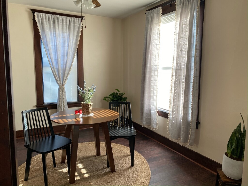 DUPLEX FOR RENT 2 bedroom, 1 bath duplex. Kitchen, dining room and living room on the first floor. 2 bedrooms and 1 bath on the second floor. Full basement with washer and dryer. Unit is unfurnished. Pictures are from a previous tenant. Nicely painted, newer vinyl flooring, nice kitchen cabinets. Refrigerator, stove/oven and microwave provided. Plenty of parking right outside your front door. Front and back porches. Very small yard. All yard maintenance provided. No dogs or cats. Rent is $900. Security deposit is $1000. Renter pays all utilities except garbage.