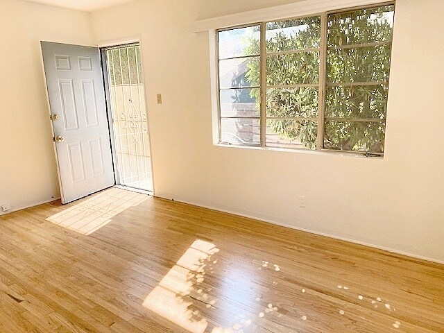 Charming, ground floor 1BR, 1 bth in a single level triplex in the heart of Los Feliz. Beautiful refurbished hardwood floors, full size eat in kitchen, with rich, wood cabinetry and lots of light! Full bedroom, with good closet space and additional built ins! Lovely bathroom with vintage pink tile accents! Big, shared backyard with lemon trees, and plush greenery to enjoy So Cal's perfect weather! Laundry onsite, one parking space in the driveway included with the rent. NO PETS. Minutes to Griffith Park, Silverlake shops and eateries, Hollywood studios and downtown LA. Beautiful, quiet, tree lined street! This will go fast! Call/text Greg to set up a tour.