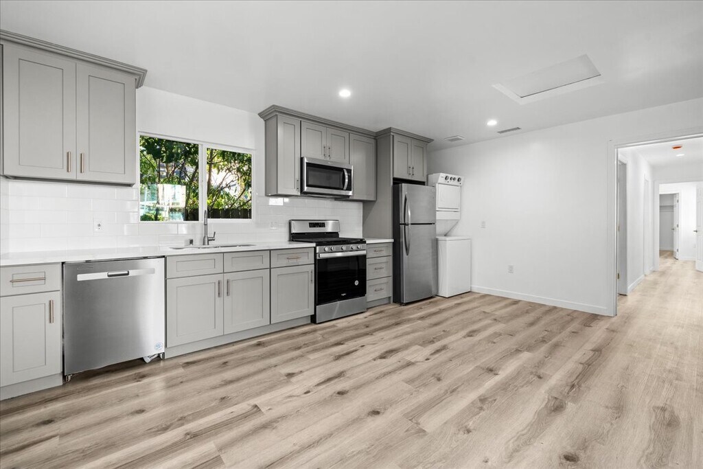 Bright and spacious 2 Bedroom/2 Bathroom standalone ADU with everything brand new, in-unit washer dryer, central HVAC, all in Prime Culver City blocks to everything Downtown Culver has to offer. Living spaces feature an open concept floor plan that allows for lots of natural light, new hardwood flooring, recessed lighting, and high ceilings. The kitchen features a full set of high-end stainless-steel appliances, white stone countertops, subway tile backsplash, modern grey wood custom cabinetry, new hardware, and tons of cabinet storage space. Plenty of room off the kitchen to accommodate both dedicated living and dining areas. Primary bedroom suite is spacious and has a massive walk-in closet. Primary bathroom features a modern vanity with a large white tile shower and glass sliding doors. Secondary bedroom is spacious and has sliding mirrored closet doors. Secondary bathroom also has a modern vanity but has a shower/tub combo with a deep soaking tub and subway tile shower walls. This home is located only a few blocks to all the best restaurants, coffee shops, and clothing stores in Culver City. Short drive to West LA, Venice, and Playa Vista. Enjoy a luxury living experience in brand new home. Street parking only.