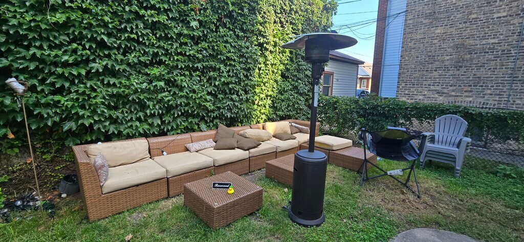 Location is Prime! Facing the Park - Views Amazing all year around and everything is close! Minutes to O'hare, New Gym on Irving Park, 3-4 min walk, Sutherlands Sports Bar 1 blk walk on Irving. GO BEARS! Large 1st floor unit directly across the street from Portage park and 1/2 block for the pools. A beautiful view and location. **All the yard furniture FOR SALE $300 and other home items as well. *7 rooms... front sun room, rear sun room, living room, dining room, eat-in kitchen, 2 bedrooms and 1 full bathroom. *Hardwood floors throughout. *Radiator heating *Laundry in the basement *Nice decorative fireplace *Ceiling fans in 3 of the rooms. *Double yard with garden space, patio and grape arbor. *Parking always available in front A beautiful apartment with everything to offer. Rooftop deck as well, rare around here!! Deposit and 1 months rent $1950 month Credit and background check required Tenant Pays Gas and Electric Available for Dec 22 - Jan 1 Pets conditional, tell us what you have