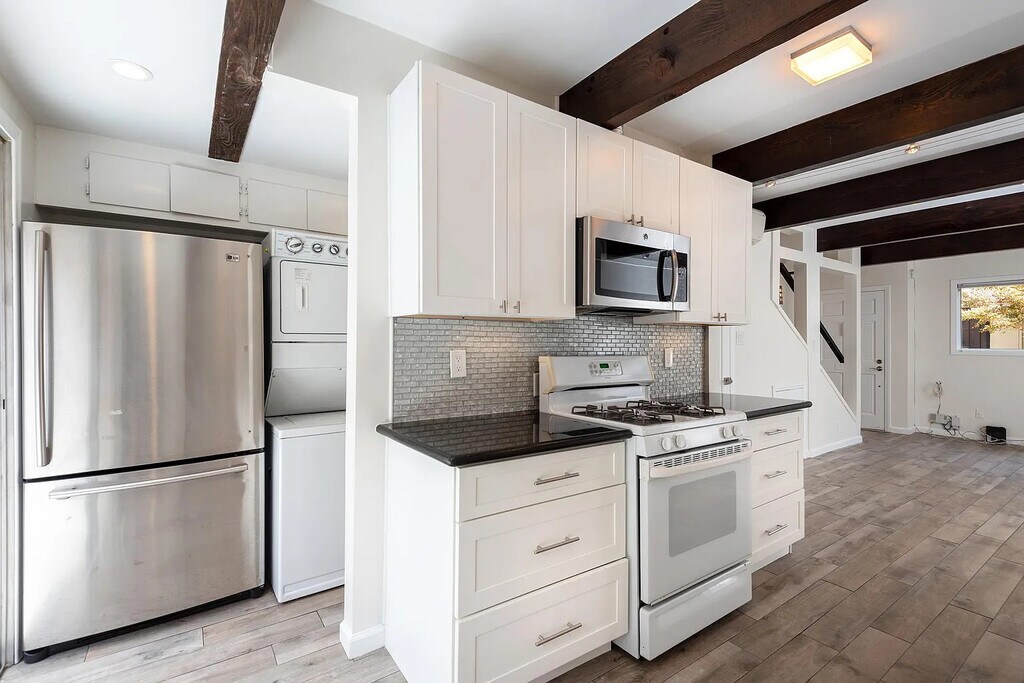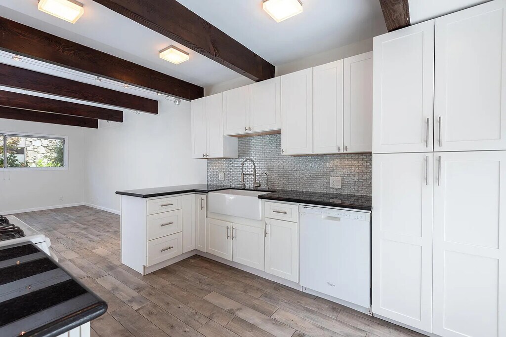 This beautiful townhome is located in the heart of Mar Vista and features wood laminate flooring and stylish tile, wood-beamed ceilings, and updated fixtures throughout. The kitchen features granite countertops, custom white cabinetry, and a tile backsplash that adds extra flair. Both bedrooms have vaulted ceilings, giving them an open and airy feeling, and the bathrooms have been updated with modern vanities with the full bath enjoying contemporary subway tile shower/bath combo. You'll love spending time on the large patio space - perfect for entertaining or outdoor dining. There's even AC and laundry in-unit. The townhouse comes with a shared garage parking space and an open space (on a first-come basis, first-serve basis). The complex has a beautiful pool, spa and sitting areas - perfect for enjoying California's amazing weather. Close to Trader Joe's, shopping, restaurants and more - this is the perfect place to call home. Will be showing the property on Sunday April 5 from 11AM to 3PM for anyone interested in seeing the property. Feel free to email if you want to confirm your visit or if you have any questions.
