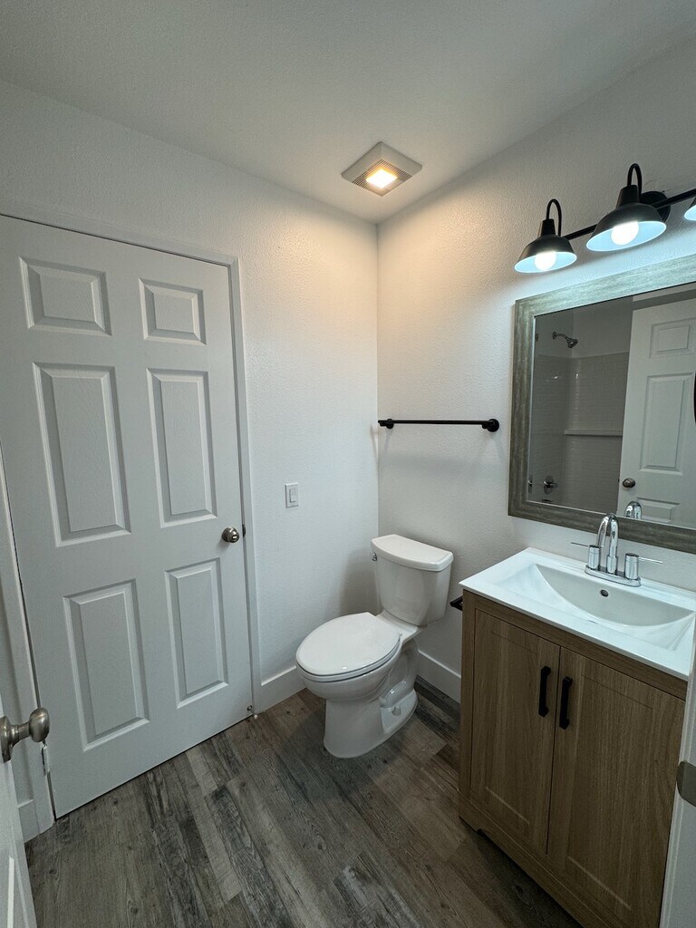 Newly remodeled apartment! Entire unit has been remodeled with new flooring, bathrooms, kitchen appliances, laundry machines, and more. Refrigerator is not show in photos, but is provided. This apartment resides on the second floor with a large balcony and 1000 sq. feet of space. Park is easy with a detached garage and additional guest space. Near major freeways, colleges, and local school districts, this apartment is perfect for those who want a comfortable living space with essential amenities. No pets allowed. Additional monthly charge $30 for trash. Tenant covers their own electricity and gas. Water is covered.