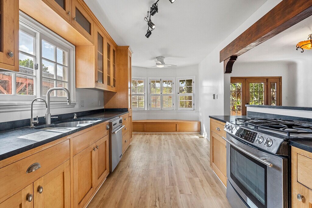 Newly Renovated 2 Bedroom/2 Bathroom stand-alone house in Prime Culver City with a private front yard and porch, private back yard, 2 car driveway, spacious backyard, in-unit washer/dryer, Solar Panels, and central heat and air. Located just a few blocks away from trendy coffee shops and restaurants on Washington Blvd, and nearby Downtown Culver City. Living spaces are bright and spacious, have original hardwood flooring throughout, unique architectural features, lots of natural sunlight, and a decorative fireplace that is not functional. The dining area is its own separate area with built in cabinetry and a ceiling fan/light. The kitchen features a full set of high-end stainless-steel appliances, custom wood cabinetry that offers tons of storage space, stone countertops, track lighting, stainless steel hardware, a second sink and faucet, and new wide-plank wood flooring. Bedrooms are spacious, offer lots of closet space, and have ceiling light/fans. The primary bathroom features a glass enclosed shower with tile walls and flooring, wood vanity with stone countertop, medicine cabinet, and modern light fixtures. The secondary bathroom has been completely renovated with a stylish tile walled shower with two built in shower shelves, large soaking tub, modern vanity, lots of cabinetry, recessed lighting, and a washer/dryer. Private backyard is enclosed and offers plenty of room to make your own. Excellent Culver City Public Schools. 5-minute drive to both the 10 and 405 freeways. 10-minute drive to most areas on the Westside. Enjoy your own private home in Culver City!