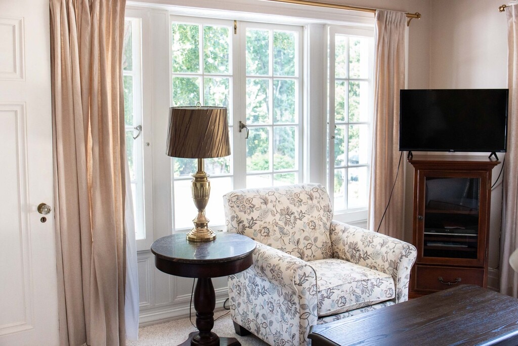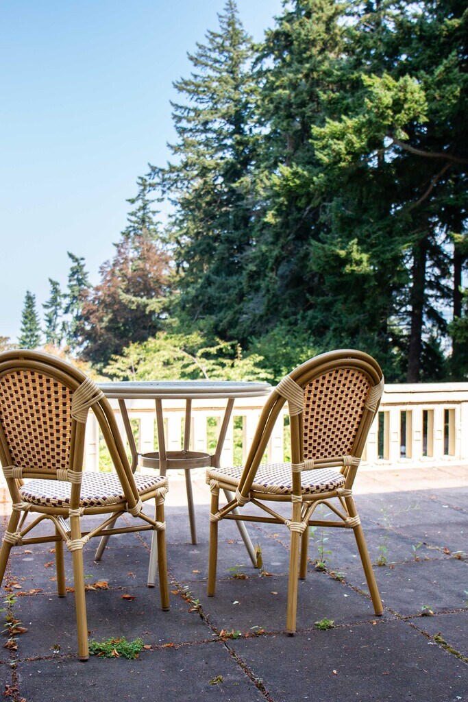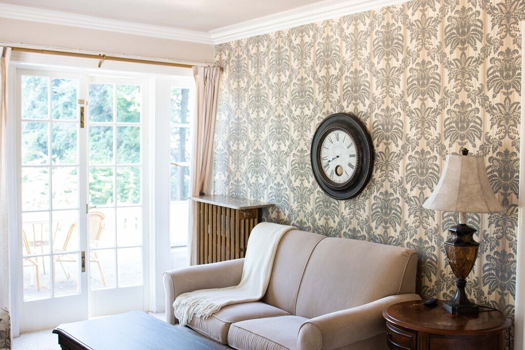 Furnished, One Bedroom One Bath Suite Rental Suite at Lairmont Manor $1,695/month ($1,795/month for double occupancy) Located at the historic Lairmont Manor estate, this apartment is a truly unique space at one of the most beautiful properties in Bellingham. Vintage wallpaper, tile, built-in cabinets, and other classic details give this space unmatched charm. Situated on the second floor above the sprawling grounds, the suite enjoys tons of light with French doors leading to a large, private outdoor patio with a view of Bellingham Bay. The bedroom and living room are both comfortable and cozy with treetop views. And the kitchen comes fully equipped with dishes/cookware, an eating nook, and a water view. Situated in Bellingham’s Edgemoor neighborhood, you’ll be walking distance to restaurants and shops in Fairhaven Village, as well as the city’s waterfront. This apartment is best suited for single occupancy or a happy couple—mature, quiet, working professionals, or retired. Contact our Tenant Manager to schedule a viewing. Include your full name, email, and phone number. + Approx. 750 sq ft + Fully furnished (Queen bed) + Utilities & wifi included + Large patio with water view + 3/4 bathroom (shower) + Carpet and tile flooring + On-site coin-operated laundry + Parking for one car & bike storage available (both included in rent) + One flight of stairs to the apartment + 20-minute walk to restaurants and shops in historic Fairhaven Village NOTE: • No pets of any kind. • No smoking anything in or around the building, no flames. • Applicants must pass a background, criminal, and credit checks. • Rental period permitted 1-6 months • This suite may also be rented as a professional office/workspace for the longer term. What to Know About Lairmont Manor Events & Resident Life While most days are quiet and bucolic, Lairmont hosts events throughout the summer weekends from approx 3-10 pm. Winter is fairly quiet aside from weekend recitals and parties. Applicants should expect/enjoy a certain level of celebratory noise. All Lairmont Manor residents must be respectful to our event guests, vendors, and staff, and understanding of the event business.