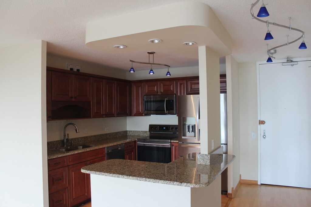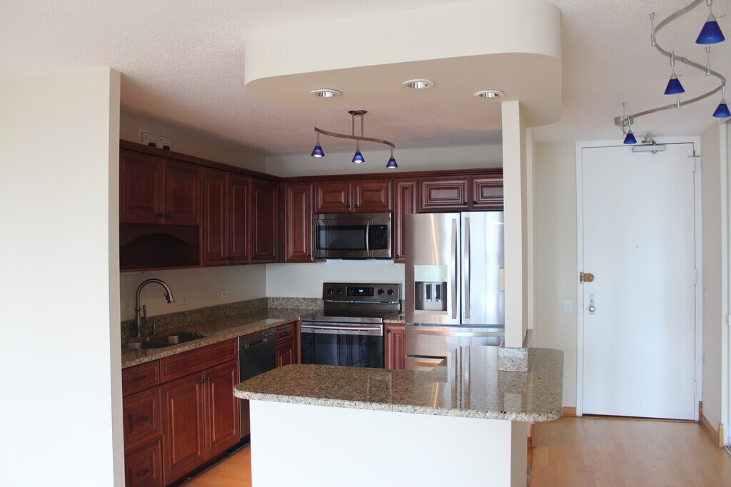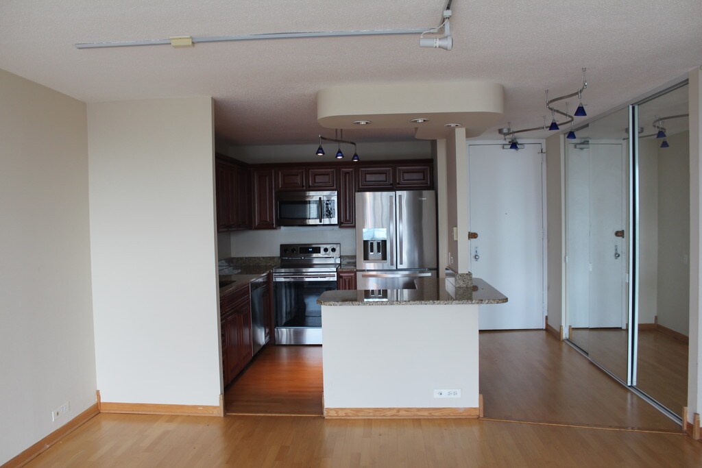 Absolutely Amazing, Breathtaking Views, High Floor, Large Condo right next to Trump Tower in the heart of Downtown Chicago. Breathtaking views from every room of this 1Bed/1Bath condo in perfect River North location! Uninterrupted views of Lake Michigan from this 47th floor large condo, approximately 900 square feet. Whole unit freshly painted. Fully updated and remodeled kitchen. All brand new stainless steel appliances, granite counter tops, new cabinets, sink and faucet. Fully updated and beautifully remodeled bathroom with walk-in shower. Everything replaced in the bathroom. One of the luxury buildings, situated at the most vibrant and desired location in downtown Chicago. Unit features kitchen that opens to large living space with hardwood floors. Spacious bedroom has carpet and a huge walk-in closet. Large windows and ample storage space throughout the unit. Unit has additional reserved storage space on the same floor. Full amenity building offers indoor pool with whirlpool, sauna, fitness center, sundeck, party/community room, and 24hr door staff. In the heart of Chicago's River North neighborhood. Right next to Trump Tower and Wrigley Building (most prestigious buildings in Chicago downtown) with incredible restaurants, shopping, and nightlife down the street. Literally steps away from Michigan Avenue and close to the Lake Michigan, Oak Street Beach, and public transportation. Just a five minute walk to Grand/State Redline station. Enjoy the Chicago River walk right at the door step. Parking space can be rented/bought separately if needed. One of the very popular Italian restaurant with finest Italian cuisine, Bongiorno's right in the lobby. Rent for this unit covers Heat, Water, Central A/C, HD Cable (Two Boxes, DVR Tivo T6) , Internet (155 MBPS) and access to all amenities in the building including: - 24 Hour Gym - Indoor Pool & Hot Tub - Sundeck - Hospitality Room - Receiving Room - On Site Laundry - 24 Hour Doorman - 24 Hour Maintenance - Restaurant - Italian - Bongiorno's - Restaurant - Lady May - Dry Cleaners - Health Club - Beauty Salon