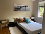 Minutes to Healdsburg Square with Michelin star restaurants, shops, wine tasting, boutiques, etc. This custom built fully furnished home features two bedrooms and is a quiet sanctuary away from all of the hustle and bustle yet close everything. Enjoy a private deck overlooking the gardens for sipping wine or enjoying morning coffee. You can also hang out on the teak swing! The home features hardwood floors throughout, 6 burner Dacor gas stove, upgraded stainless steel dishwasher, refrigerator with ice maker and microwave. Marble back splash and counters in the kitchen. Enjoy the beautiful gas fireplace in the living room. Bedroom features a queen sized Japanese platform bed and has a quiet Zen feel. The other bedroom contains a sleeper sofa, coffee table and a writing desk; great for guests or work from home. Full bath with tub. There is a second 1.75 bath in the garage area with travertine tiles. Fully appointed kitchen to whip up your gourmet meals or just relax with a glass of wine. One car garage included. This home is great for traveling nurses and doctors, business professionals, those wanting to sample the area before you purchase your own home, etc.