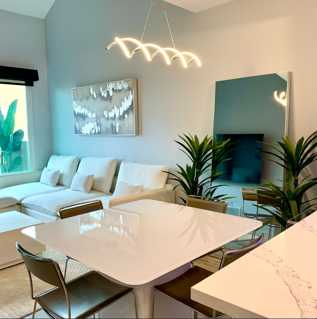 Modern 1 bedroom/1 bathroom top-floor condo in Marina del Rey with vaulted ceilings and gorgeous designer upgrades throughout. The sleek kitchen is complete with Viking gas range and microwave, Fisher & Paykel fridge, stainless steel Bosch dishwasher, white quartz counters, and Kohler sink. The primary suite has a walk-in closet and large spa-like bathroom with custom cabinets, walk-in 3D tile shower and Porcelanosa multifunction shower column. The luxury unit also features Whirlpool Duet stacking washer/dryer, Nest thermostat, modern designer LED lighting, custom window shades, plenty of closet space, and a sliding door entrance to the balcony to enjoy the sunset. This unit is fully furnished with an 82" Sony TV in the living room, CB2 white linen sofa sectional, CB2 dining table and chairs, 50" Samsung TV in the bedroom. Rent also includes 2 private parking spots in a gated garage. This gated building has many amenities including outdoor pool/hot tub, media room and lounge, gym, common area Wi-Fi, and bike storage. Very walkable to the Marina Market place trendy restaurants, In-N-Out, AMC, Equinox and plenty of shopping. Just minutes away from Playa Vista, Abbot Kinney and Venice Beach. Can rent condo furnished or unfurnished - $3,650/mo. Please reach out for full video of apartment, if interested. Thanks! No smoking allowed. Two private parking spots in a covered garage is included in rent and access to all amenities. Utilities are not included in rent. Thanks!