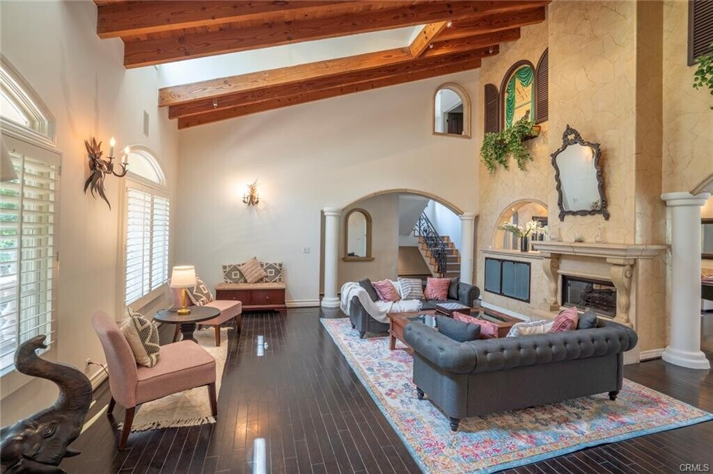 Situated in a coveted South of Ventura location, this 4BR+5BA gated Mediterranean offers timeless elegance, perfectly suited for both everyday living and grand entertaining. From the moment you enter, the dramatic living room makes a statement with two-story beamed ceilings, skylights, and a striking fireplace. The formal dining room is ideal for hosting gatherings, featuring custom built-in cabinetry that adds character and functionality. A true showpiece, the gourmet kitchen was meticulously designed by a celebrity chef with entertaining in mind-complete with granite countertops, stainless steel appliances, a Viking six-burner stove with griddle and double oven, center island, custom cabinetry and a greenhouse window. The kitchen flows into a sunlit breakfast area and spacious family room with fireplace, built-in bar and wine cooler, all seamlessly opening to the stunning backyard. The main level features two ensuite bedrooms -including a generous secondary master suite with double sinks and french doors leading out to the yard. Upstairs, the primary suite is a true sanctuary. Enter through double doors to find a spacious haven with high ceilings, french doors, and a private balcony. The luxurious master bath offers double sinks, a spa tub, and an oversized shower, along with a dressing area featuring two vanities, an extra sink, and a huge walk-in closet. Step into the backyard and be transported to a private tropical paradise. Surrounded by lush foliage, the outdoor space is ideal for entertaining, with a resort-style pool and spa, covered patio, grassy yard and a cabana dining area. The outdoor chef's kitchen includes a built-in BBQ, two burners, deep fryer, sink, and a separate bar area- perfect for al-fresco gatherings. Set in a quiet section of Benedict Canyon Dr on a dead end street - not the busy stretch off Mulholland leading down to Beverly Hills - this elegant Mediterranean retreat exudes a lifestyle of inspired living and is available either furnished or unfurnished.