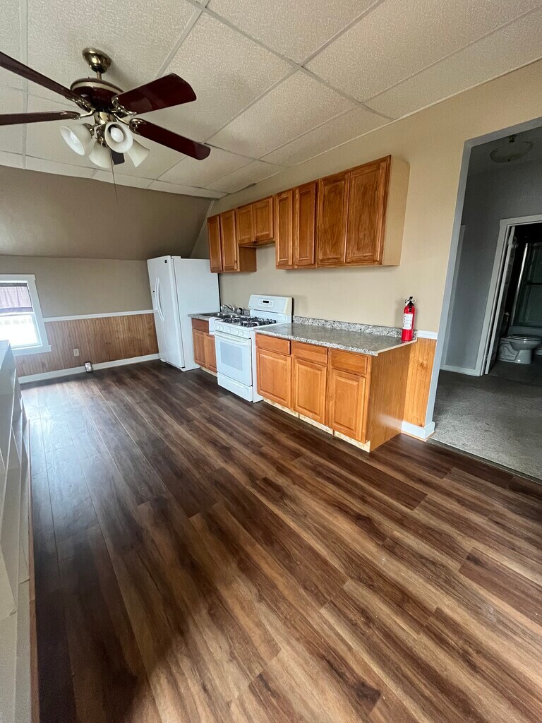 Spacious 2–3 bedroom upper-level apartment featuring high ceilings, beautiful hardwood floors, and abundant natural light. The unit offers a functional layout with large living spaces, built-in storage, and flexible room use ideal for a variety of living arrangements. The home includes a newly remodeled kitchen with ample cabinet space and full-size appliances. The unit features forced-air heating and central air conditioning, providing year-round comfort. A convenient private laundry room is located on the same floor. The full bathroom includes a tub/shower combo. Enjoy access to a shared front porch and backyard. ? Forced heat & central air ? Newly remodeled kitchen ? High ceilings & large living spaces ? Built-in shelving & storage ? Private laundry room on the floor ? Tenant pays all utilities ? Hardwood floors ? No pets ? Section 8 welcomed