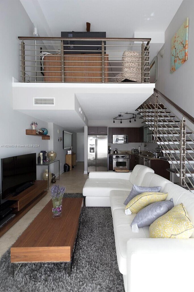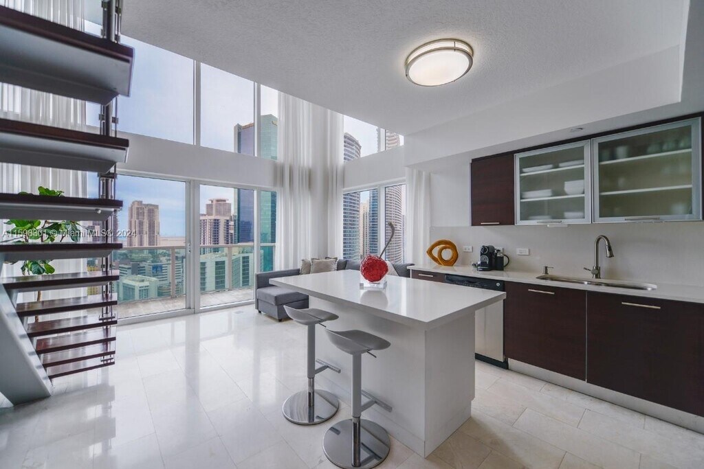 Stunning two-story loft bathed in abundant natural light during the day, and enchanting city lights that twinkle at night! This remarkable corner unit showcases captivating views, including a panoramic south-facing perspective of the vibrant Brickell area, an eastward gaze encompassing the picturesque Miami River and Biscayne Bay. The lower level boasts a cozy second bedroom, complemented by elegant tile flooring throughout, while the modern open kitchen boasts sleek granite countertops. Indulge in the unparalleled condominium experience, offering four floors of luxurious amenities such as a conference room, party room, billiards, ping-pong, a well-equipped gym, a rejuvenating spa, and two inviting swimming pools. This is an absolute must-see property, where true appreciation awaits!