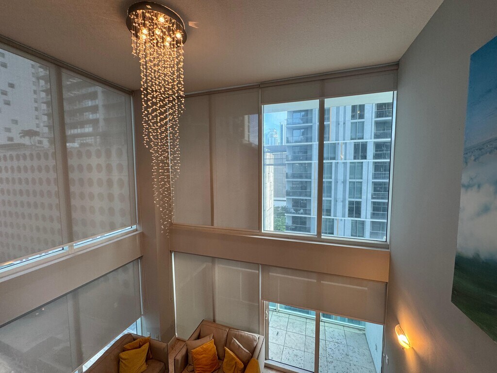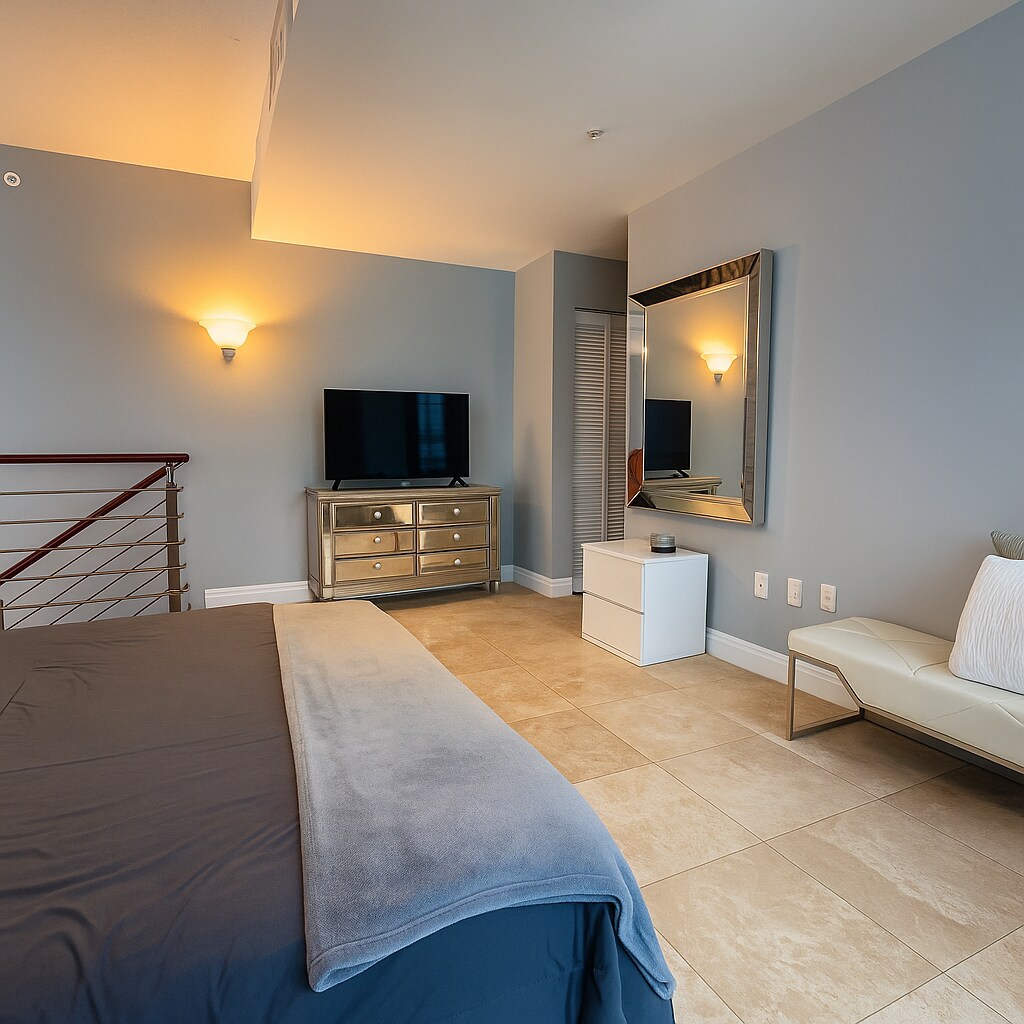 This furnished 2-bedroom, 2-bathroom apartment located at 41 SE 5th St offers a spacious 1,289 square feet of living space. The open loft layout enhances the living room, providing ample room for relaxation and entertainment. Each bedroom features sufficient closet space, while the bathrooms are equipped with essential fixtures. The kitchen includes a dishwasher for convenience and is adjacent to the dining area. Additional amenities include air conditioning, an in-unit washer and dryer, and access to a fitness center. The building features an elevator for easy access to all floors. The exterior is well-maintained, providing a welcoming entrance. The rental price is available upon request.