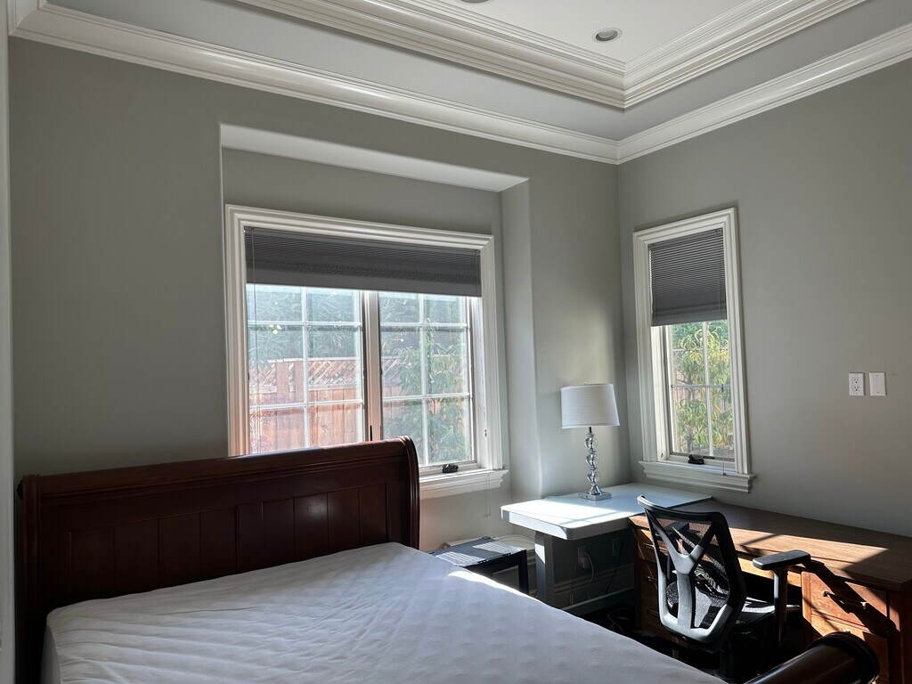 Private Bedroom with Private Bath – Available October 16 (Midtown) A fully furnished private bedroom with its own private full bathroom in our newer home will be available starting October 16th. If you’re interested after reading the details below, please reach out and include a brief description of yourself and your rental needs in your message. Room Features: -- Furnished with a queen-sized bed, large desk, comfortable chair, and built-in closet -- Two windows plus a separate glassed entry door providing abundant natural light and beautiful views -- Hardwood floors throughout with area rugs for added comfort -- Single occupancy only -- No pets, no smoking, and no overnight guests (unless occasionally pre-approved) Rent and Utilities: Monthly Rent: $1,650, and Utilities and Internet (additional): $150 flat fee Parking: Ample free off-street parking available Household & Kitchen: Light cooking permitted in the kitchen Location: -- Secure and peaceful neighborhood in mid-town Palo Alto -- Minutes to Stanford, Google_, Meta, Tesla, Amazon, Apple, LinkedIn, Nvidia, and more If this sounds like a good fit, please contact us with a brief description of yourself and your rental needs.