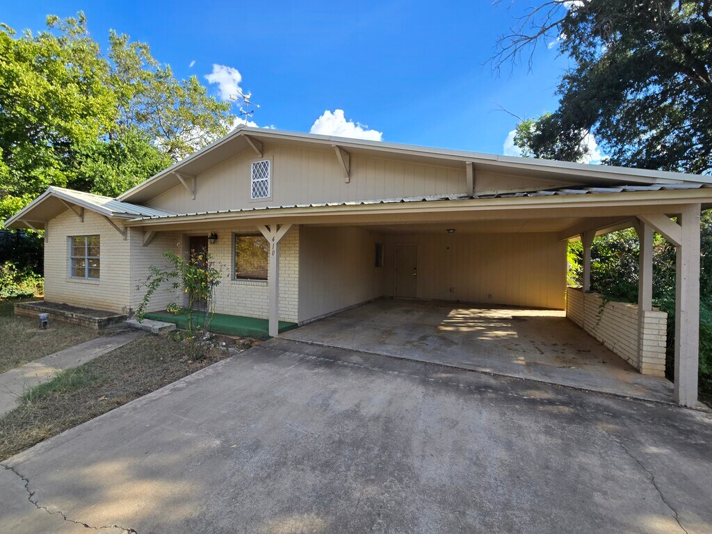 For lease! This charming 2-bedroom, 2-bath brick home offers comfort, convenience, and small-town living for $1,700/month. Located in a quiet neighborhood just steps from downtown Llano and the Llano River, this custom-built home is within walking distance of shops, restaurants, wine bars, coffee shops, a movie theater, and music venues. Inside, you'll find a spacious, light-filled living and dining area with ceramic tile flooring throughout. The kitchen includes a breakfast area, built-in desk, and corner cabinets. The large primary suite features a walk-in closet and access to a covered patio and fenced backyard. The second bedroom and bathroom offer comfortable space for guests or family. Other features include a large 2-car carport, central A/C and heat, a convenient utility room, and no steps into the home. Privacy fence surrounds the backyard. Application and background check required. One month rent security deposit required. Pets Allowed!