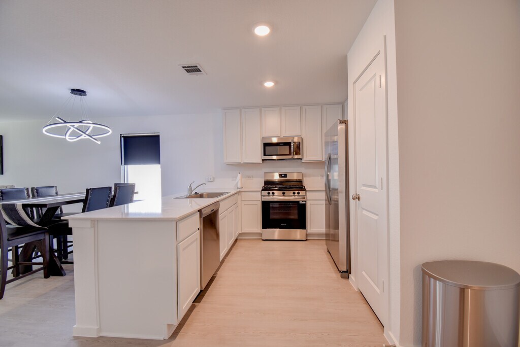 Newly built home, fully furnished with the traveling professional in mind. The kitchen is complete with dishes, cooking utensils, and Keurig coffee maker. Located just minutes from UTMB Hospital (Angleton Danbury Campus) and other professional industrial sites. Some of Texas's finest fishing is within 30 minutes on the Texas gulf coast. Alvin Community College 19 miles Brazosport College 11 miles University of Houston 42 miles Home comfortably fits six. Community has hiking trails.