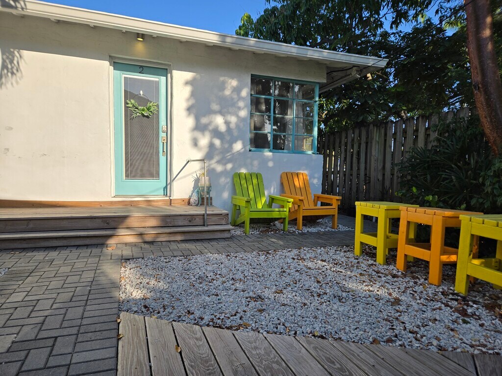 Beautiful semi furnished apartment in a triplex. Conveniently located 4 blocks from the lively downtown area where you will find all of the great restaurants and bars. Only 1.5 miles from the stunning Lake Worth Beach and the pier where you can dine in the famous Benny's On The Beach. Only 0.5 mile from the Lake Worth Beach Golf Club, 0.5 miles from Publix, 1.9 miles from Palm Beach State College and 17 miles from FAU. We are within the city limits for the Circuit app that provides $1.00 rides to LW downtown or the LW beach! The property is found down a boardwalk through a hidden garden. The front door opens to a secluded courtyard lots of available outdoor living. Lake Worth offers so much in this quaint beach town: - The famous Street Painting Festival that brings over 600 artists that turn our downtown into a work of art - Holiday parades along downtown Lake Ave - Festivals and concerts at Bryant Park - Bonfires on the beach with live bands All these amazing activities are walking distance this property! If you need even more, we are centrally located at only a 15 minute drive to Downtown West Palm Beach and 17 minute drive to downtown Delray Beach and many other near by beaches to chose from! Want to explore more of Florida? We are only 9.4miles, a short 15 minute drive from the luxurious Brightline! Sip and ride to explore Boca Raton, Ft. Lauderdale, Miami or even Orlando! When you are done exploring, you can return to your quite and comfortable costal apartment to get all the R&R you need, fully furnished with all of the modern appliances you may need.