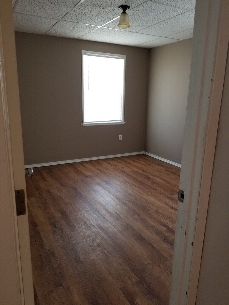 This 1-bedroom apartment with an office space is in a building with 3 other units. It has shared free laundry with 2 other units. Utilities are included in the rent. All entrances are secured, and there is a private parking lot in front of the building. We do not allow pets or smoking inside the building.