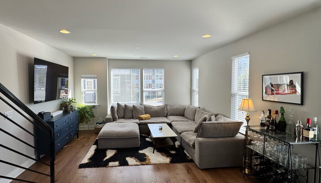 This light-filled 2-bedroom, 2 full bath + 2 half bath end-unit townhome is located less than a mile from Uptown Charlotte in a quiet, dog-friendly community. Built in 2021, it offers modern finishes, functional space, and city convenience in one of Charlotte's most desirable areas. The open-concept main level features a stylish kitchen with stainless steel appliances, quartz countertops, and a balcony off the dining area. Upstairs, both bedrooms have private en-suite baths and walk-in closets, while the fourth-floor office/flex room is ideal for working from home or hosting guests. Can be furnished or unfurnished.