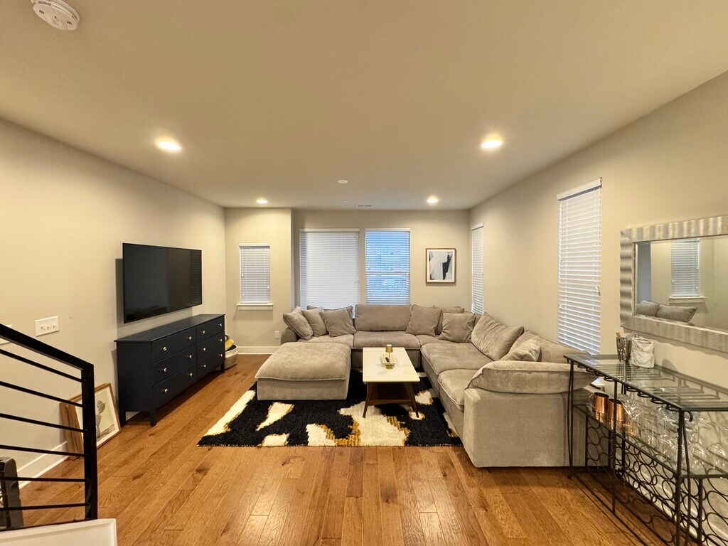 Largest backyard area in the entire plan. Fully furnished! This light-filled 2-bedroom, 2 full bath + 2 half bath end-unit townhome is located less than a mile from Uptown Charlotte in a quiet, dog-friendly community. Built in 2021, it offers modern finishes, functional space, and city convenience in one of Charlotte's most desirable areas. The open-concept main level features a stylish kitchen with stainless steel appliances, quartz countertops, and a balcony off the dining area. Upstairs, both bedrooms have private en-suite baths and walk-in closets, while the fourth-floor office/flex room is ideal for working from home or hosting guests.
