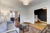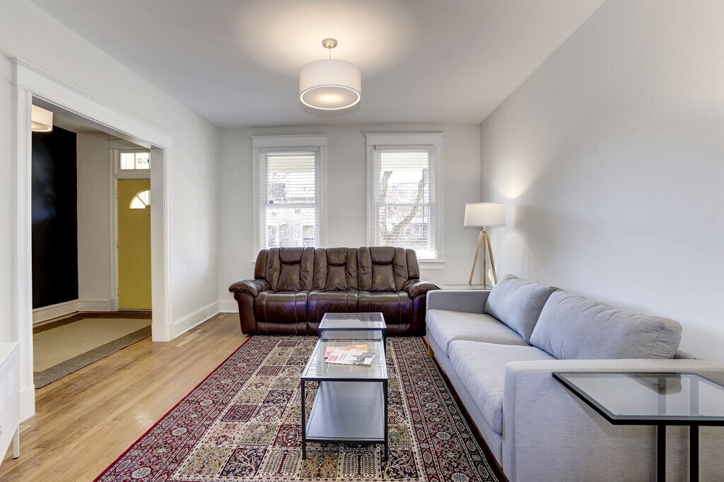 This is a classic renovated D.C. rowhome close to the Petworth Metro! Form your own group home with this 6 bed (5 bed +1 den) / 3.5 bath property. House: Enjoy original charm blended with a complete renovation of wide federal-style DC rowhouse in Petworth. Timeless items like original 5ft pocket door and hardwoods stayed, but the basement was excavated and brand new waterproofing system was installed with vapor barrier tied into a new sump pump. A new slab was poured topped with wood look tile to avoid nasty carpet. All systems are new, specifically: all new plumbing (including sewer line), electrical, and dual-zone variable speed TRANE system for HVAC. The property has 3.5 brand new bathrooms with tile to the ceiling and behind all vanities to avoid any moisture problems. The windows have all been replaced and are covered by 2” cordless slat blinds. The property has new designer lighting throughout, including a 5-globe pendant above the dining and an 18” globe light diffusing a calming vibe at the upstairs landing. The property comes with a furnished living / dining space. Brand new high efficiency washer dryer. Kitchen with maple cabinets, stainless steel gas range and granite countertops. 2 refrigerators. New front and rear decks w/ composite decking material, cute little patio out back for summer grilling and sweet string lights (already installed around deck). Upper level bedrooms have a ceiling fan/light. All lower level bedrooms have recessed lights that are 2700k LED giving off warm light. Location: Convenient living close to the Georgia Ave / Petworth metro station (green/yellow line). Located 1,890 ft from the metro. It's 0.36 mile from the front door to the top of the metro escalator (7 min walk). The 64 bus stop is a few doors down. Street parking in the area is easy. Neighborhood amenities: Midlands Beer Garden, Timber Pizza, Looking Glass Lounge, Hook Hall and a short walk to the 11th street corridor of Columbia Heights: The Coupe, Red Rocks, El Chucho and Wonderland. Yes!Organic market, and Safeway only a couple blocks away. Please note the following application requirements: Proof of income (2 most recent paystubs, dated, with applicant name), Proof of funds (Recent bank statement in the name of the applicant, showing proof of funds to cover first month's rent, security deposit), Credit Check, Background Check, Passport/Int'l ID (For International Applicants Only). Please apply with a guarantor if you believe your applicant would benefit! At this property we do not allow: Smoking of any kind, Pets, or Mini refrigerators.