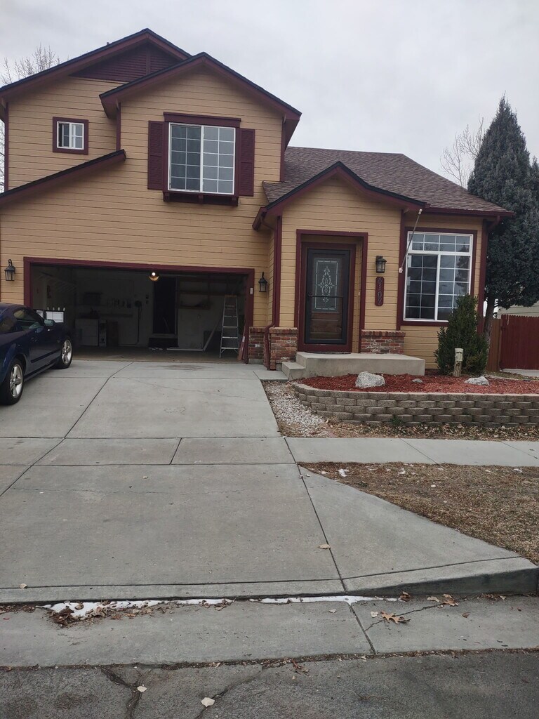 This is a property located at Villages of Sand Creek within walking distance of Sand Creek International School. Is a four bedroom three and a half bathroom the main level has 18 ft voltage ceilings dining room and kitchen that face the backyard with views to Pikes Peak central air, Heating. The house has been completely painted inside a new carpet and other amenities. The property also has a complete front and back sprinkler system and a two car garage that is heated.