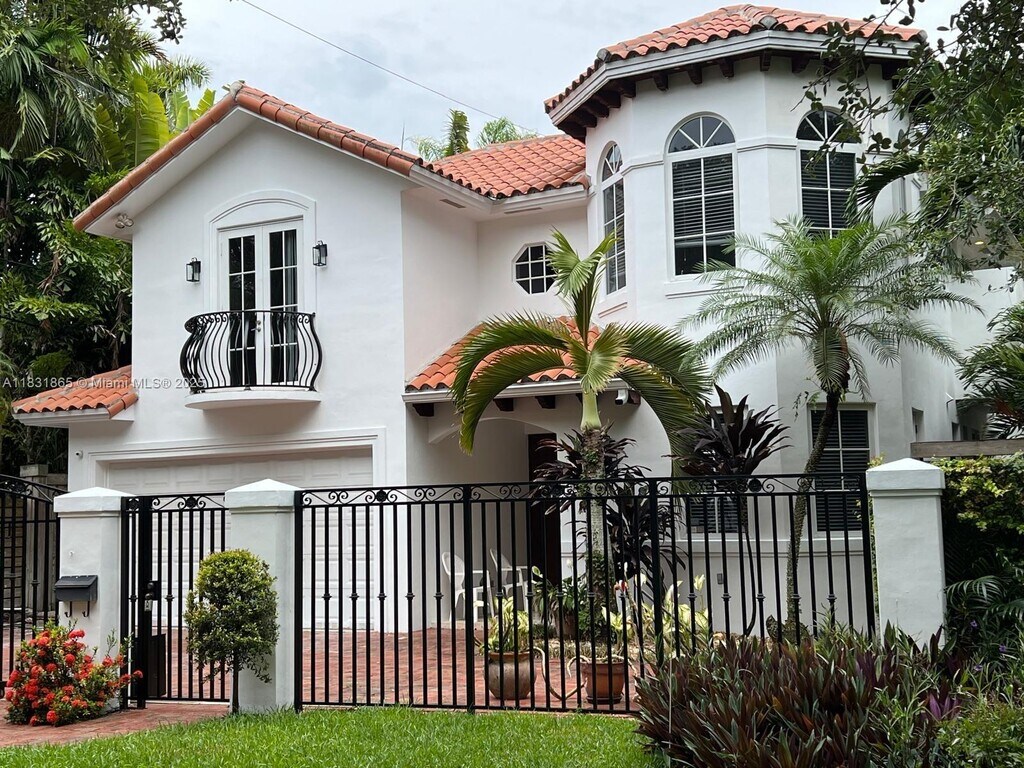 In one of the most sought-after areas of Coconut Grove; amidst lush, green, mature vegetation, characteristic of the city, is this enchanting 2-story, 4 bed/3.5 bath, pool home. Walled, light & bright Mediterranean, w/gracious balconies, volume ceilings, hardwood & travertine floors, sparkling pool, & 2 car garage. 1 bedroom & 1.5 baths downstairs & 3 bedrooms & 2 baths upstairs. Spacious primary bedroom w/jacuzzi tub for two & separate large shower. Laundry conveniently located upstairs. Kitchen w/ample storage opens to dining/family room, w/built in bar. Location is truly ideal, located mid-block on a quiet residential st, just E of Le Jeune Road, which means a quicker commute to Gables, Brickell, Downtown & all points North. Close to best schools in Miami & the University of Miami.